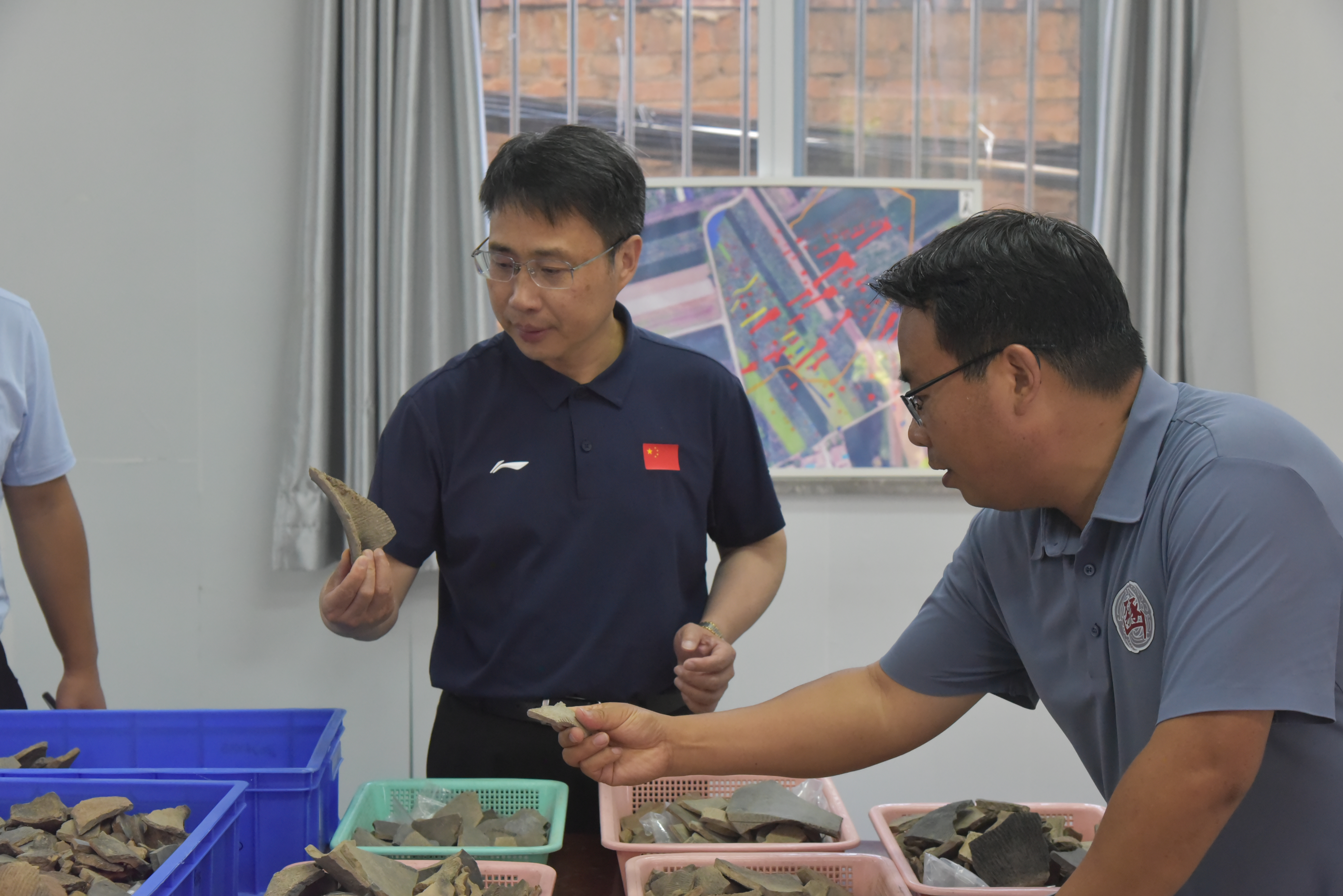 孙庆伟一行来到古豳地考古实习综合基地,参观发掘现场、基地各实验室、标本室及展厅,考察考古发掘出土文物与基地建设情况,并与田野考古实践训练班学员及考古实习师生进行座谈。田野考古实践训练班学员、2021级考古班本科生及带队教师先后发言,畅谈各自在本年度田野考古工作中的收获与感受,表示通过本次实习,师生联系更加密切,学生实践能力得到了多方面锻炼。