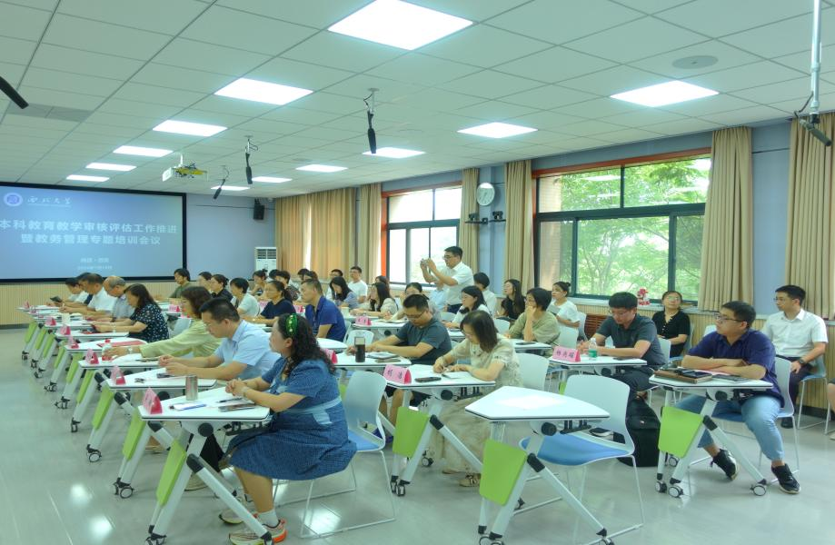 7月18日下午,学校在长安校区召开本科教育教学审核评估工作推进暨教务专题培训会。会议邀请陕西高等学校本科教学管理工作先进个人,西安电子科技大学人工智能学院教育教学办公室主任侯晓慧作专题培训。副校长曹蓉出席会议并致辞。教师发展中心负责人、教务处全体成员、各院(系)教务员、教学秘书等参加会议。