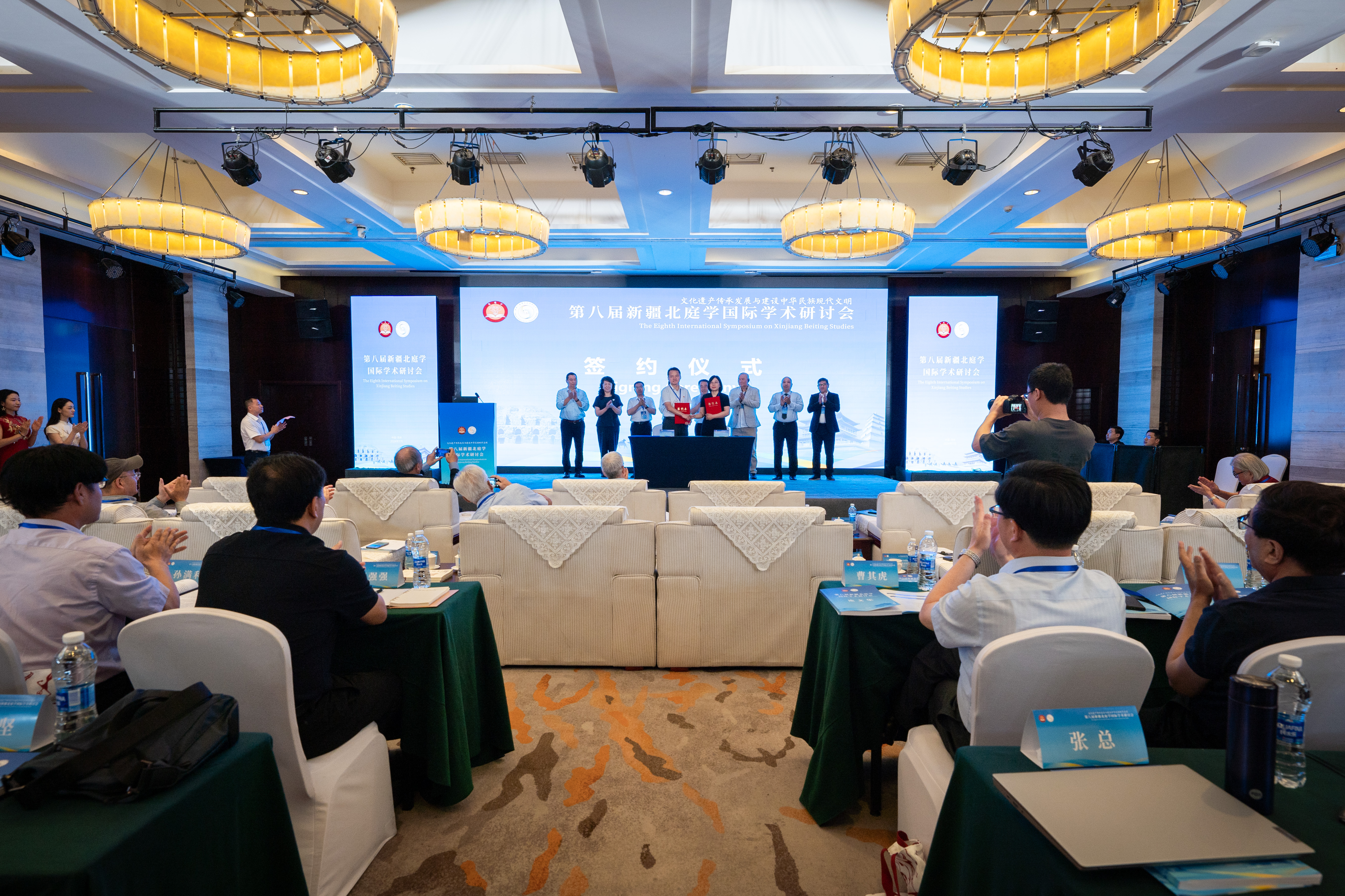 会议开幕式上举办了《唐代北庭文书整理与研究》新书发布仪式,吉木萨尔县党组成员、副县长与丝绸之路考古合作研究中心负责人共同签署了《吉木萨尔县人民政府与丝绸之路考古合作研究中心框架性合作协议》。