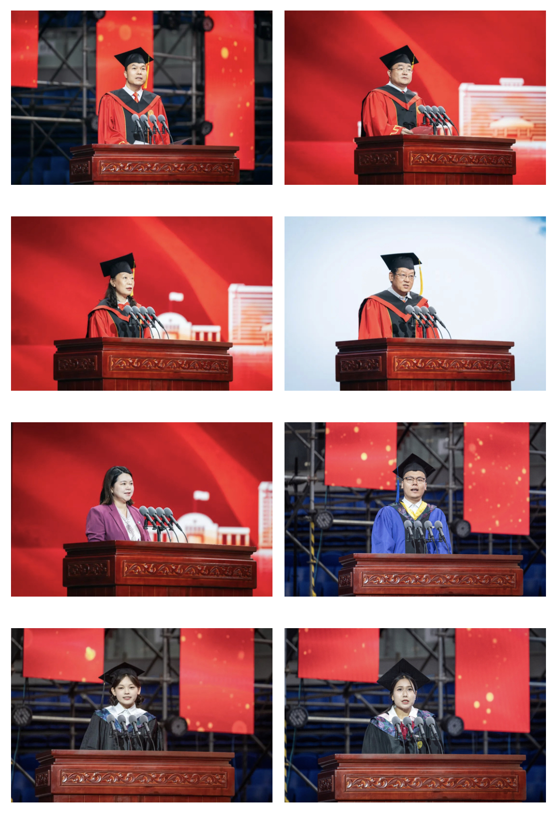 他殷殷寄语广大毕业生:要“化欲望为志气”,为热爱而全力奔跑,不害怕试错,敢于去探索、去尝试、去经历、去发现;要“化内耗为内省”,接纳不完美的自己,不逃避、不厌弃、不停留,汇聚“韧”的勇气,完成自我超越;要“化执念为执着”,将理想融入到人生每一个当下的瞬间,在高度专注投入中自然平顺地实现目标、达成所愿;要“化刚性为弹性”,习得高复原力和高心理韧性,激发自身体内潜能,有效增强与世界的连接感。他最后祝愿每一位同学都能成长为一个“韧”的人,坚信每一个“韧”的西大人,都会被看见。
