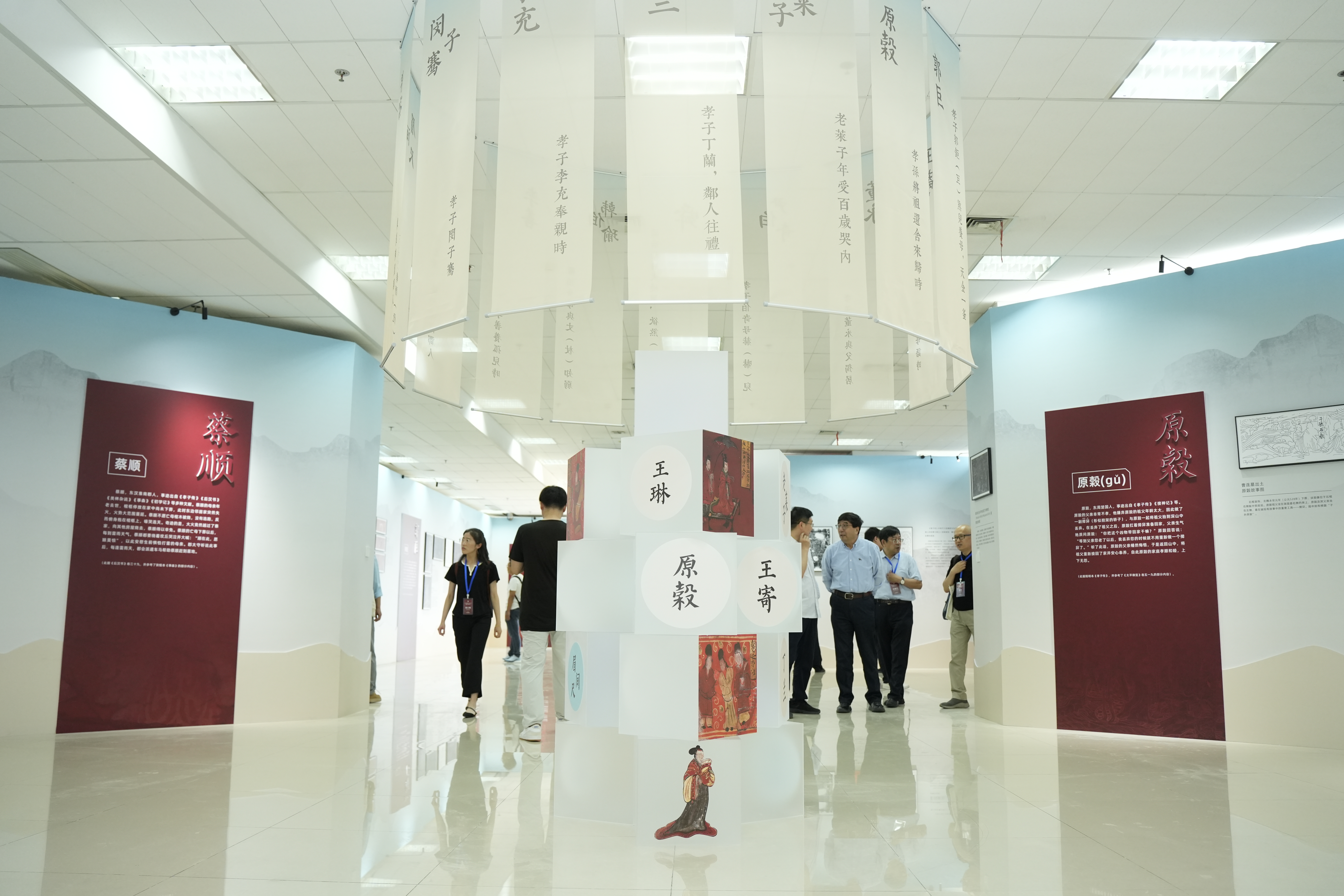开展仪式后,与会人员共同参观了展览,此次展出的中古孝悌故事图像共计16组故事、90余幅图像,原件分布于国内外各大收藏机构,出土时以彩绘或线刻形式附着于漆棺、围屏、石椁等器物上的图像装饰。“不可思议的孝子——中古孝悌图像展览”获得来自河南省文物考古研究院、山西博物院、洛阳市考古研究院、深圳市金石艺术博物馆、宁夏固原博物馆等单位的支持。展览地点为长安校区图书馆5层南走廊展厅。