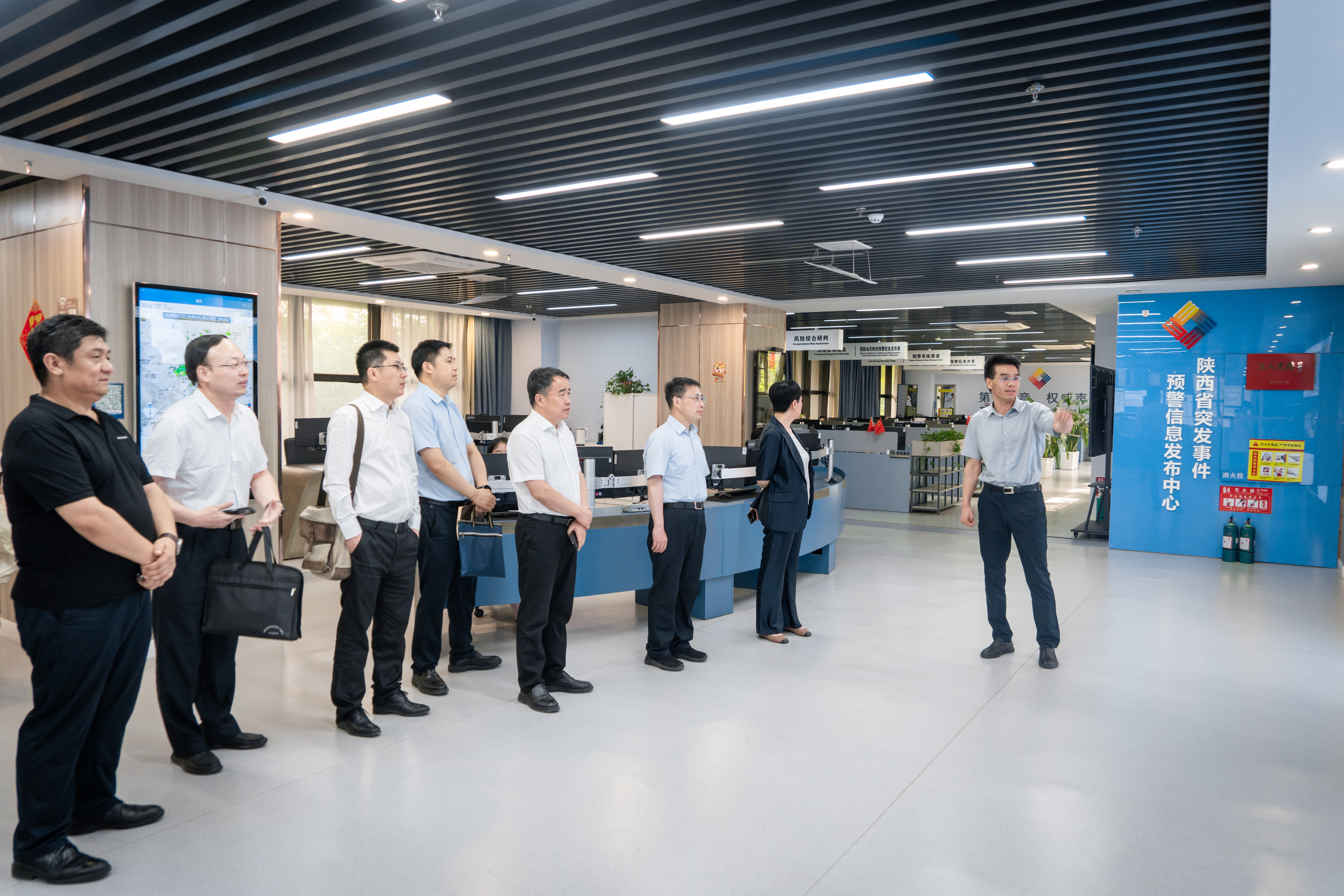 会前,孙庆伟一行参观了省人工影响天气中心、省农业遥感与经济作物气象服务中心、气象台、气候中心、信息中心、大探中心、气象服务中心平台。(图/ 李康康)