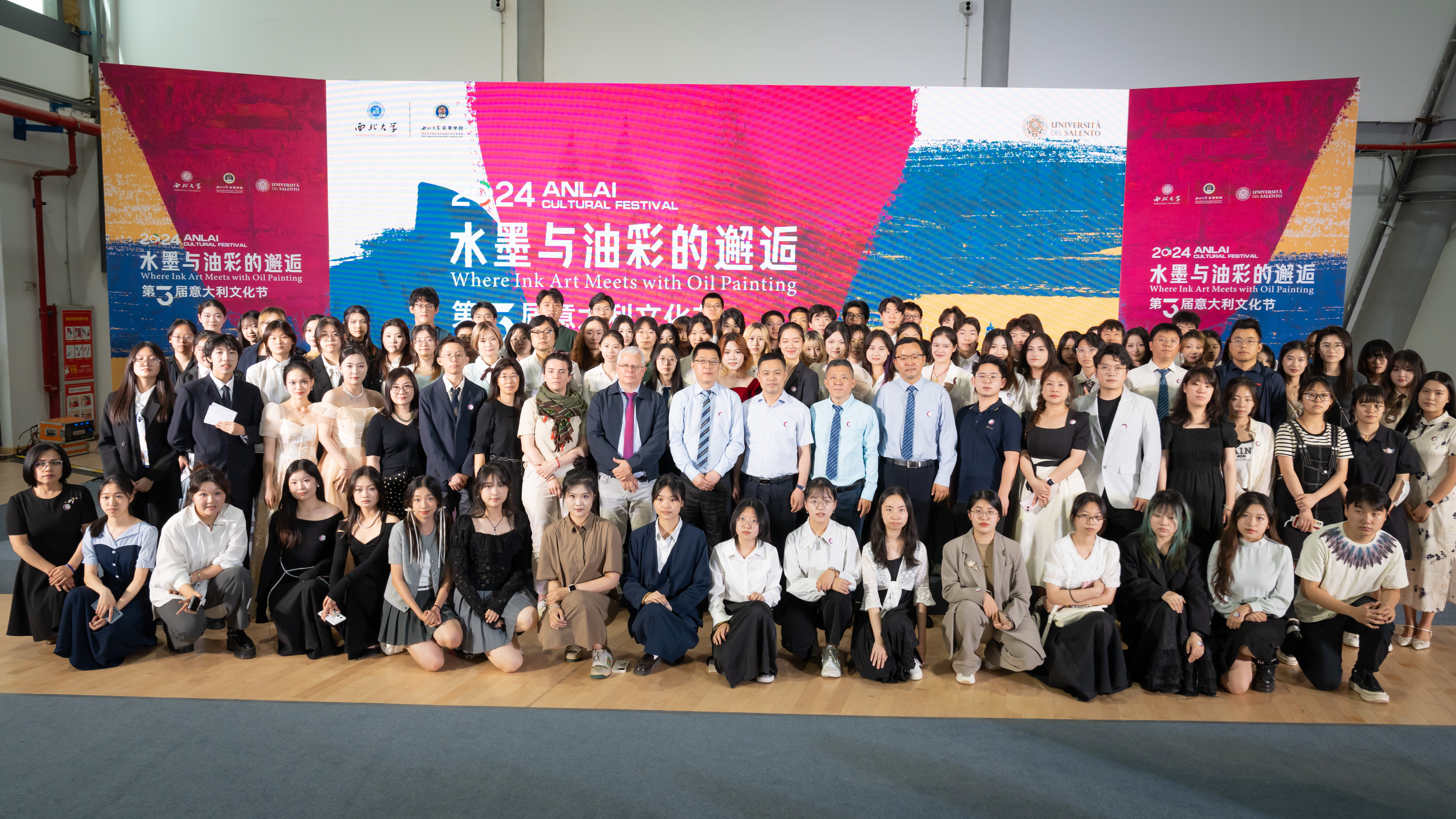 6月12日,以“水墨与油彩的邂逅”为主题的乐鱼网页版页面登录第三届意大利文化节开幕式在长安校区举办。西安欧美同学会(西安留学人员联谊会)常务副会长沈将华,秘书长李峰涛,乐鱼网页版页面登录校长孙庆伟,校党委常委、副校长李振海,副校长曹蓉,校党委常委、宣传部部长田明纲,省内高校中外合作办学机构师生,学校相关处室、院系负责人,中意教师代表、安莱学院全体师生参加本次活动。