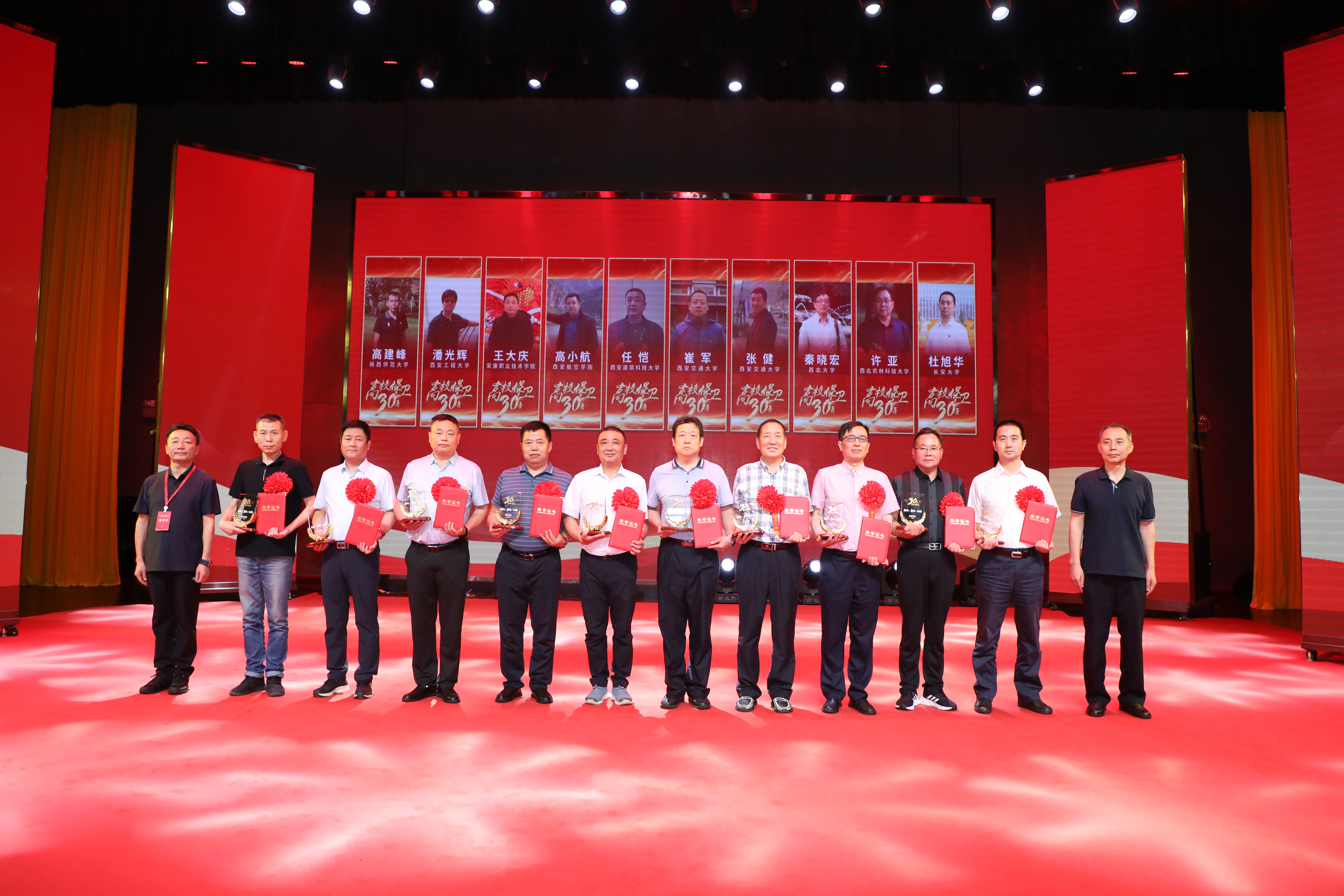 授章仪式以视频“礼赞!忠诚担当”为开篇,从“壮阔卅载 忠诚永恒”“敬业坚守 无论风雨”“孜孜守护 平安芳华”“矢志笃行 阔步向前”四个方面回顾了陕西高校保卫工作的发展历程,展现了30年人物的峥嵘风采,并为40位“高校保卫战线工作30年人物”代表颁发奖杯和荣誉证书。