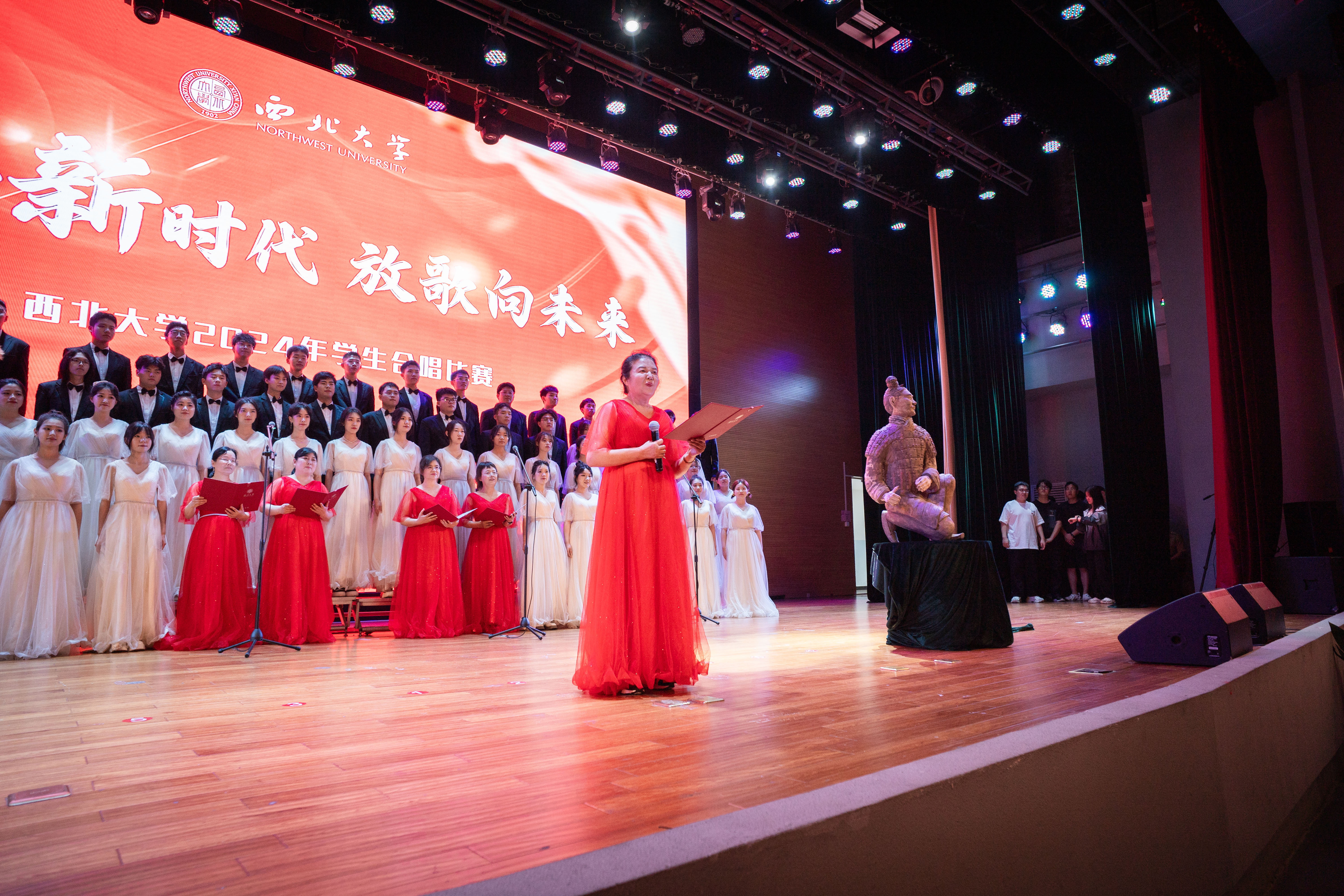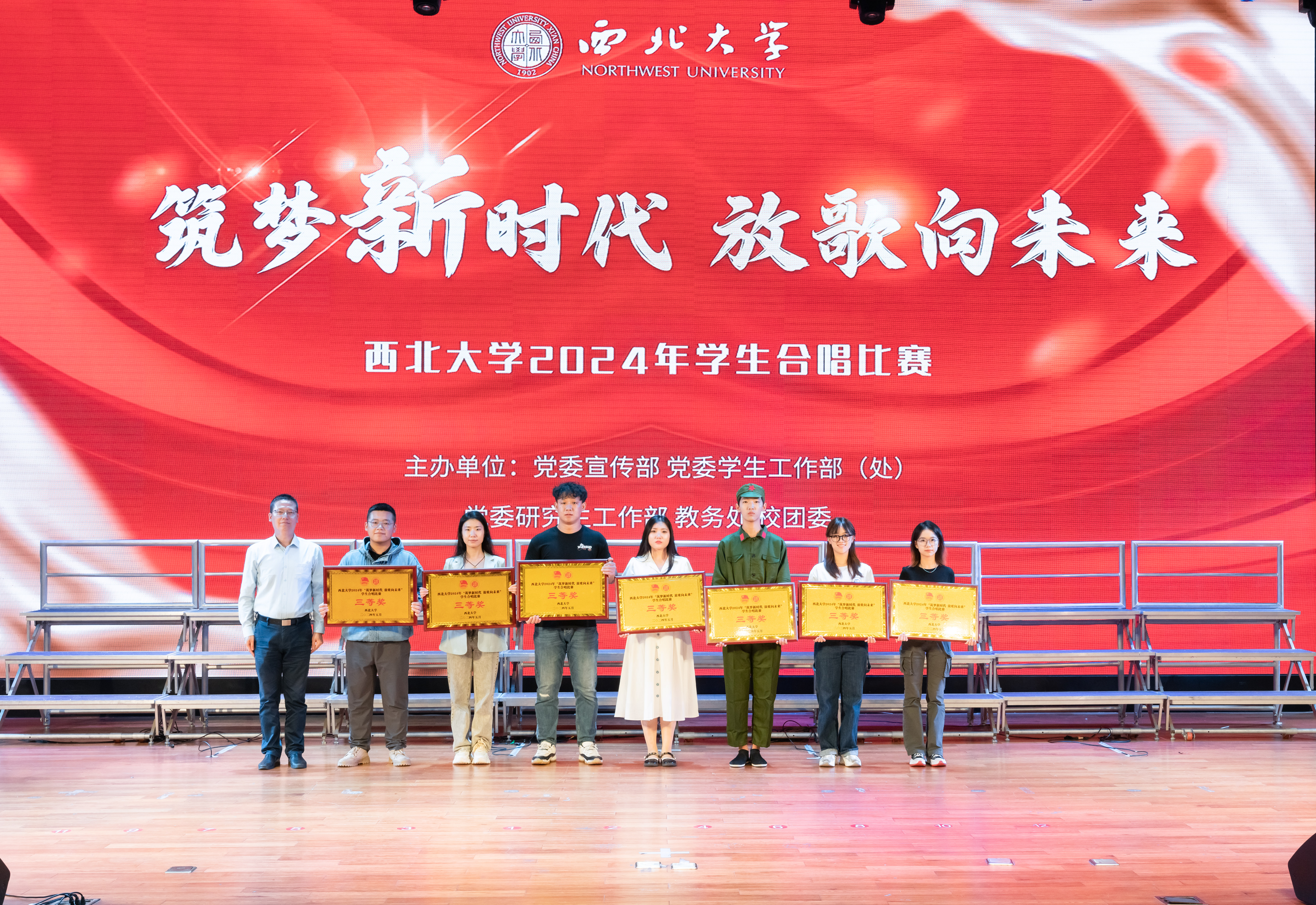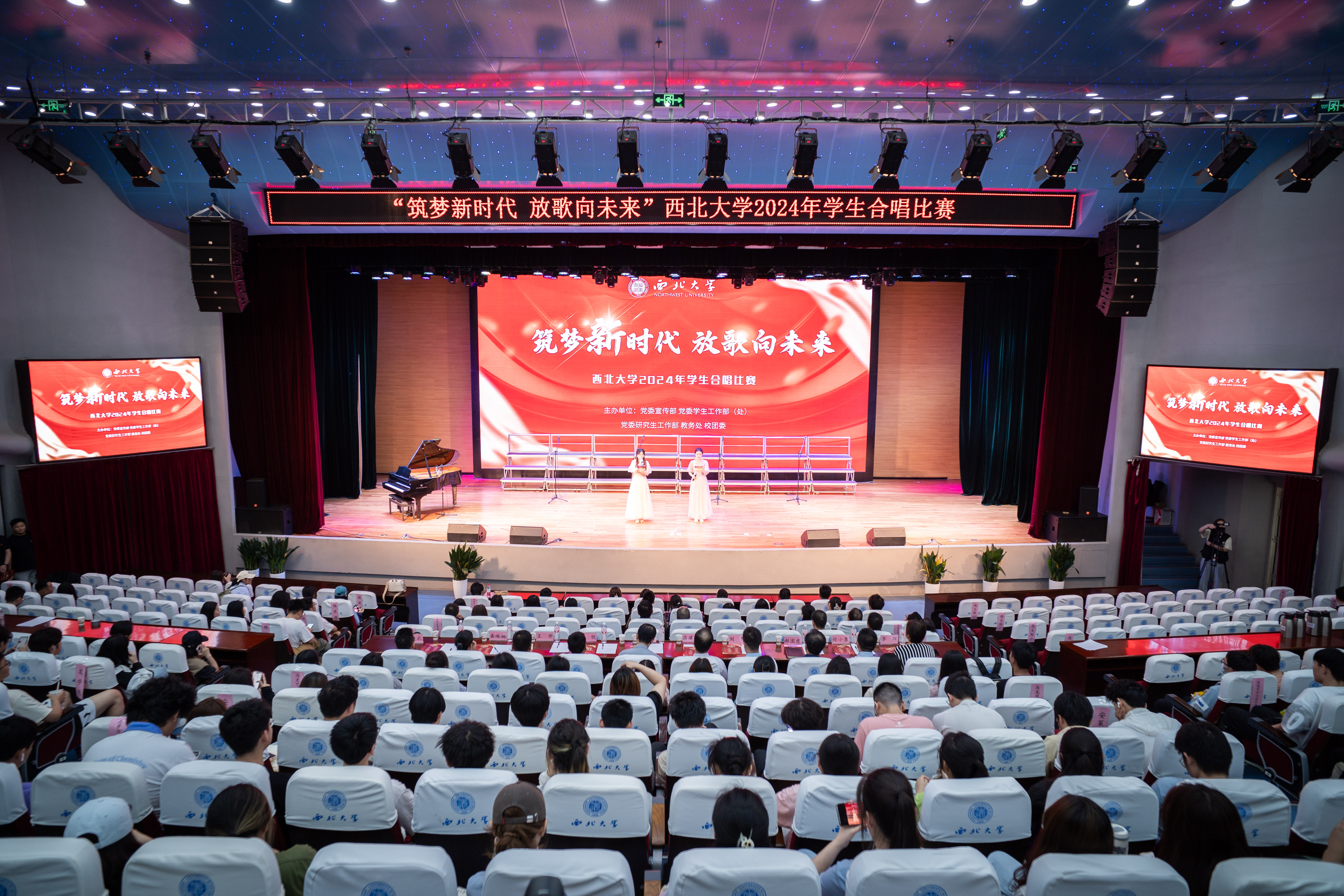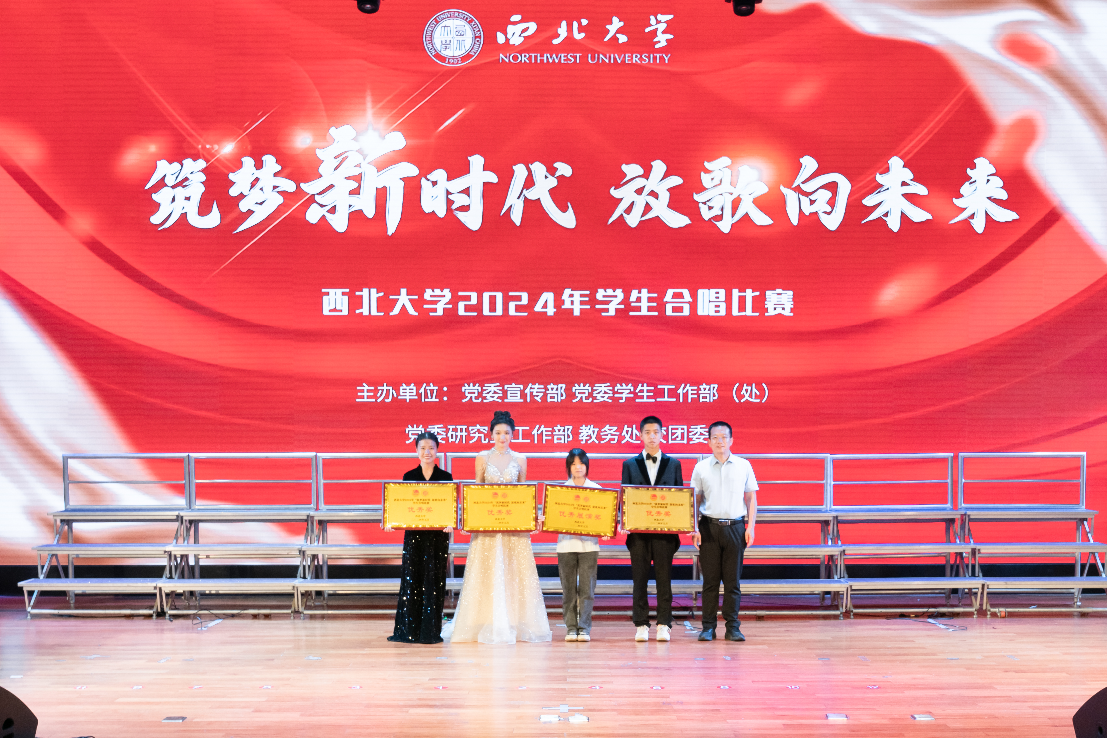 舞台上光芒闪耀,各合唱团盛装以待,一遍遍《乐鱼网页版页面登录校歌》表达着百廿西大历史的积淀与传承的故事,交相辉映的灯光点亮了薪火相传的征途。激昂的旋律,婉转的音符,一首首经典歌曲诉说了近现代中华民族在党的领导下苦难辉煌的奋斗故事;台上的同学们气宇轩昂、歌声嘹亮,展现了新时代青年为中国式现代化挺膺担当的豪迈气魄。