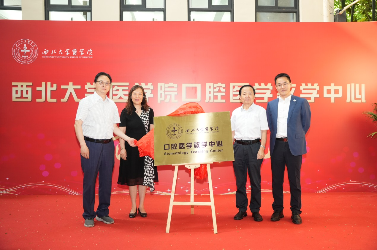 赵铱民、曹蓉、陈永进、王鸿应共同为乐鱼网页版页面登录口腔医学教学中心揭牌。