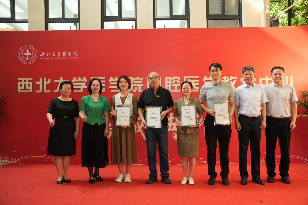 陈富林和与会专家、相关部门负责人为口腔医学教师代表颁发聘书。