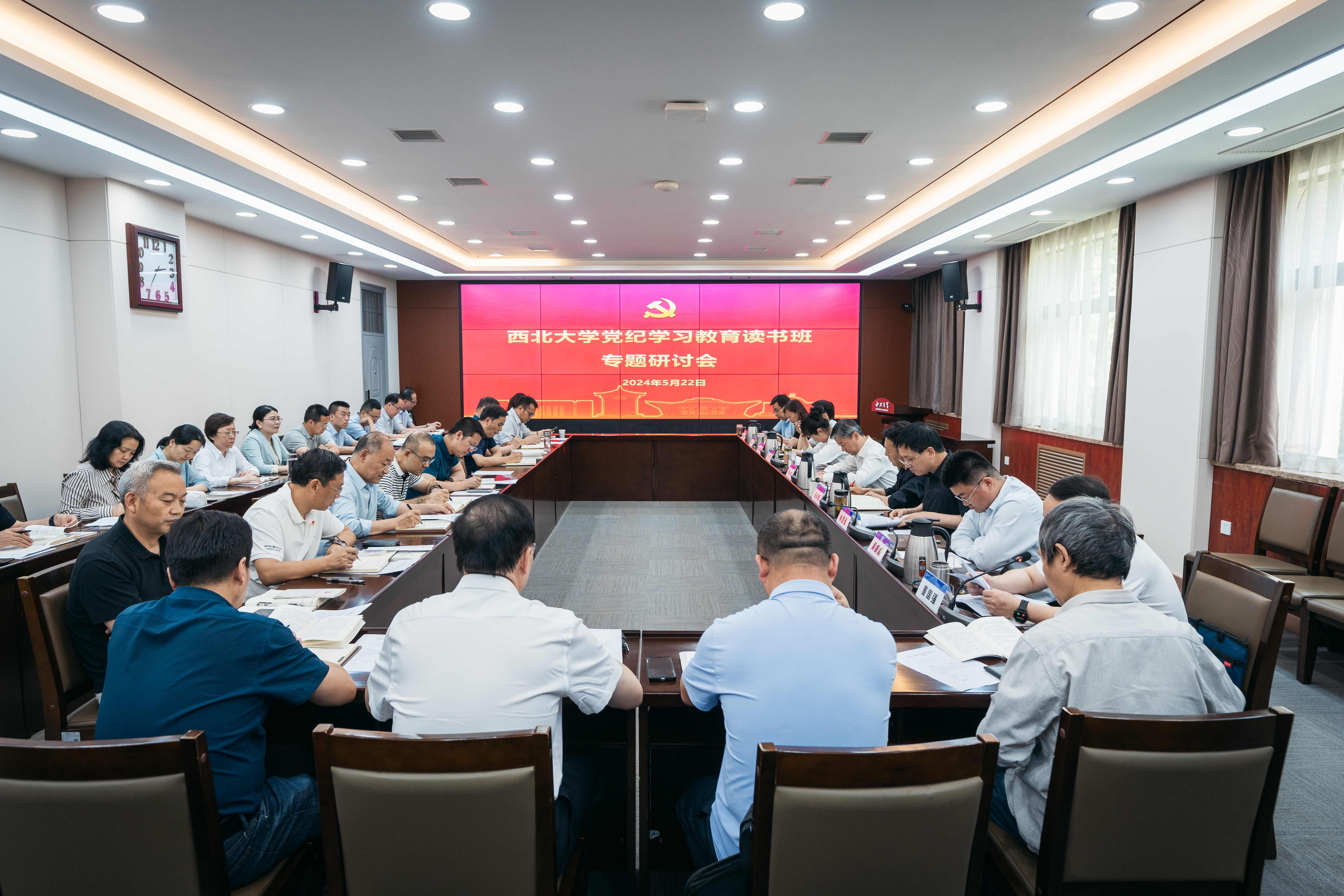 5月22日下午,学校在长安校区召开党纪学习教育读书班专题研讨会。校党委理论学习中心组成员、党委委员、纪委委员围绕新修订的《中国共产党纪律处分条例》(以下简称“《条例》”),紧扣党的政治纪律、组织纪律、廉洁纪律、群众纪律、工作纪律、生活纪律进行了交流研讨。会议由校党委书记蒋林主持。机关各部门党支部书记列席会议。