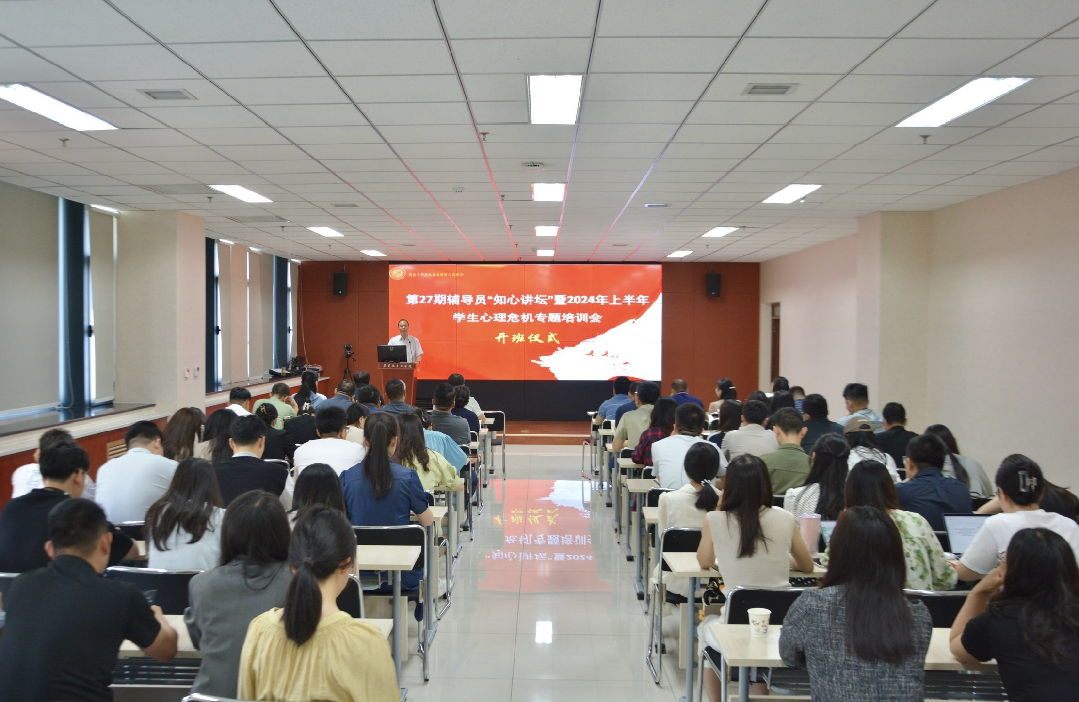 5月16日,乐鱼网页版页面登录第27期辅导员“知心讲坛”暨2024年上半年学生心理危机专题培训班在长安校区举行。本期“知心讲坛”的主题是“心理危机专题培训”,旨在精进辅导员心理危机识别与干预技能、提升乐鱼网页版页面登录大学生心理危机干预工作实效性。校党委副书记吕建荣,心理健康教育中心负责人,各院(系)学生工作负责人、心理专干、近三年留校辅导员及心理健康教育中心全体工作人员参加了培训。活动由学工部负责人主持。