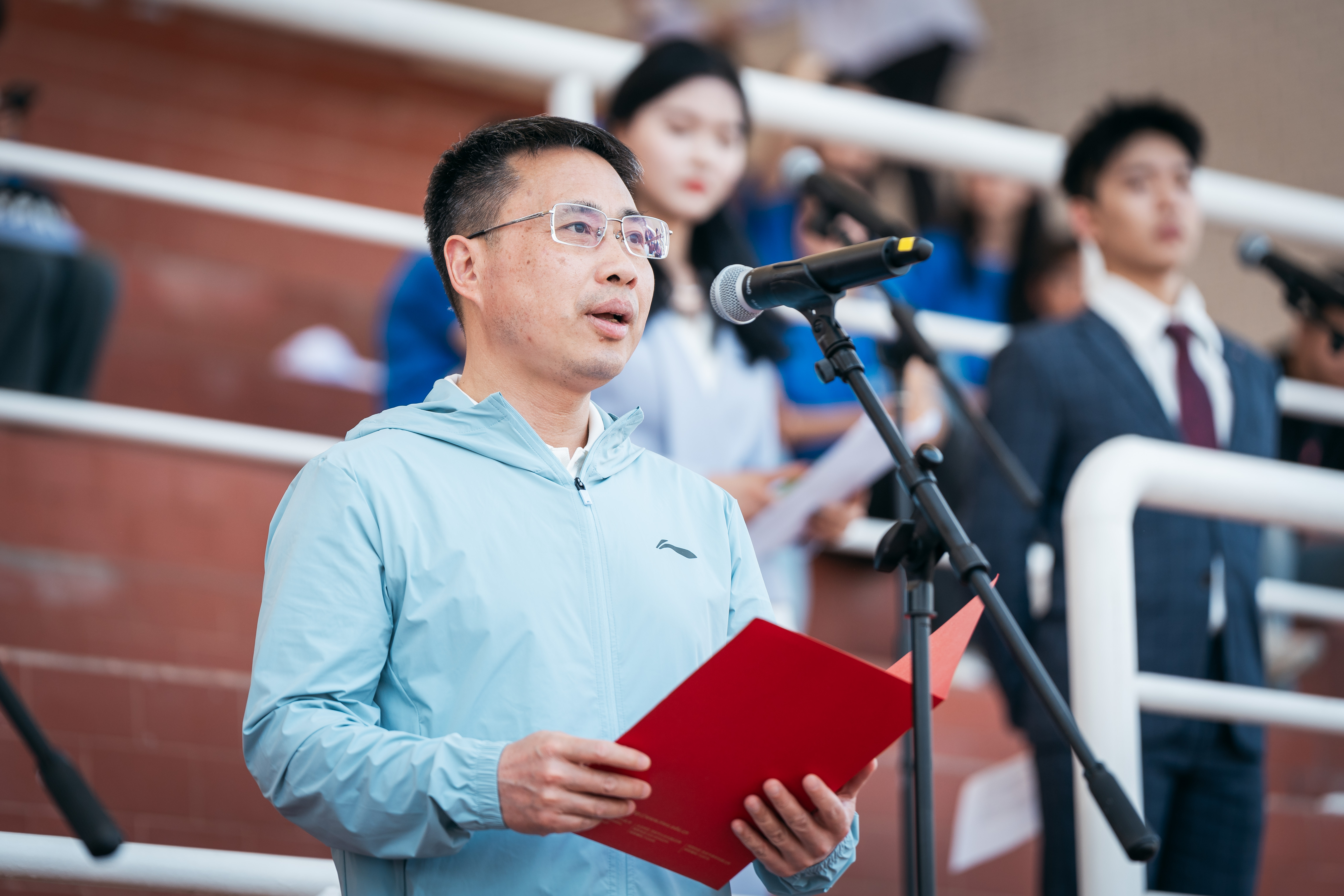 校长孙庆伟宣布体育文化节田径运动会正式开幕