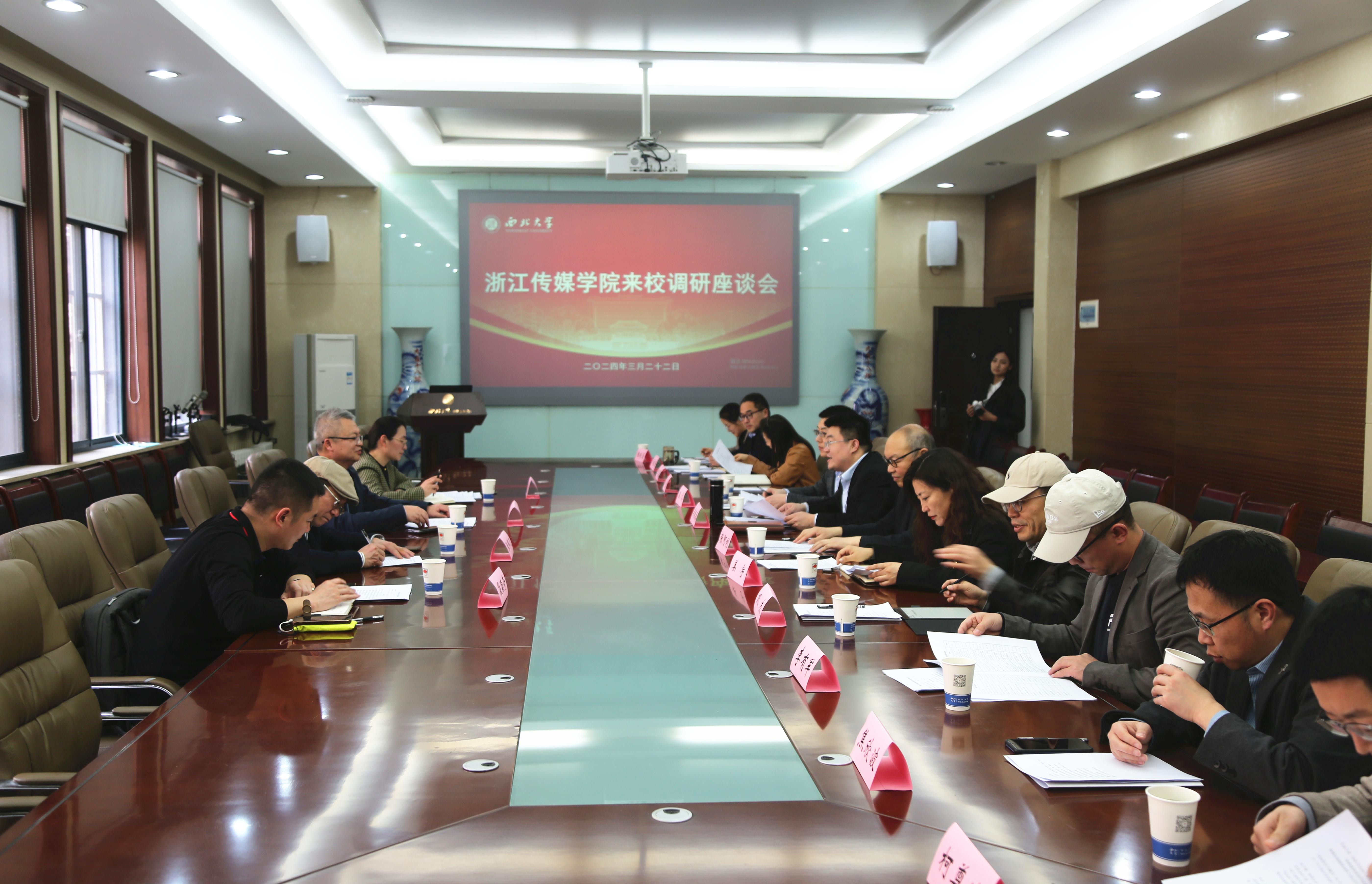 3月22日下午,浙江传媒学院党委委员、副校长姚争一行就研究生教育教学相关事宜来校交流座谈。会议由校党委常委、副校长吴振磊主持,学校相关单位负责人参加会议。