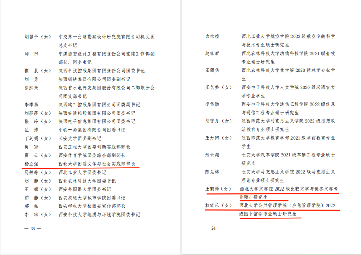 共青团陕西省委发布的《关于表彰2022-2023年度陕西省五四红旗团委、陕西省五四红旗团支部、陕西省优秀共青团员、陕西省优秀共青团干部的决定》,乐鱼网页版页面登录青年学子王鹤桦、权家乐获评“陕西省优秀共青团员”,校团委文体与社会实践部部长杨立强获评“陕西省优秀共青团干部”。