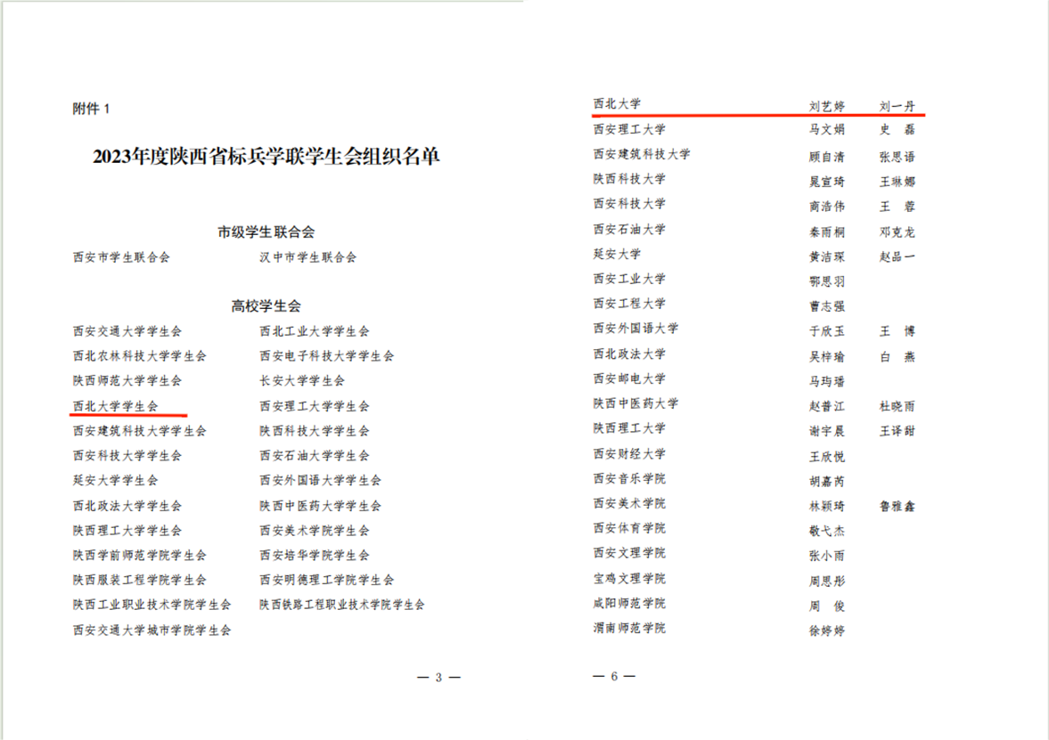 陕西省学生联合会下发《关于2023年度陕西学联学生会组织工作述职评议结果的通报》,乐鱼网页版页面登录学生会、研究生会双双获评“陕西省标兵学联学生会组织”,校学生会刘艺婷、刘一丹,校研究生会史若毓、赵妍,乐鱼网页版页面登录陕西省学生联合会刘立新、王举荟共6名同学被评为“2023年度陕西省学联学生会先进工作个人”。
