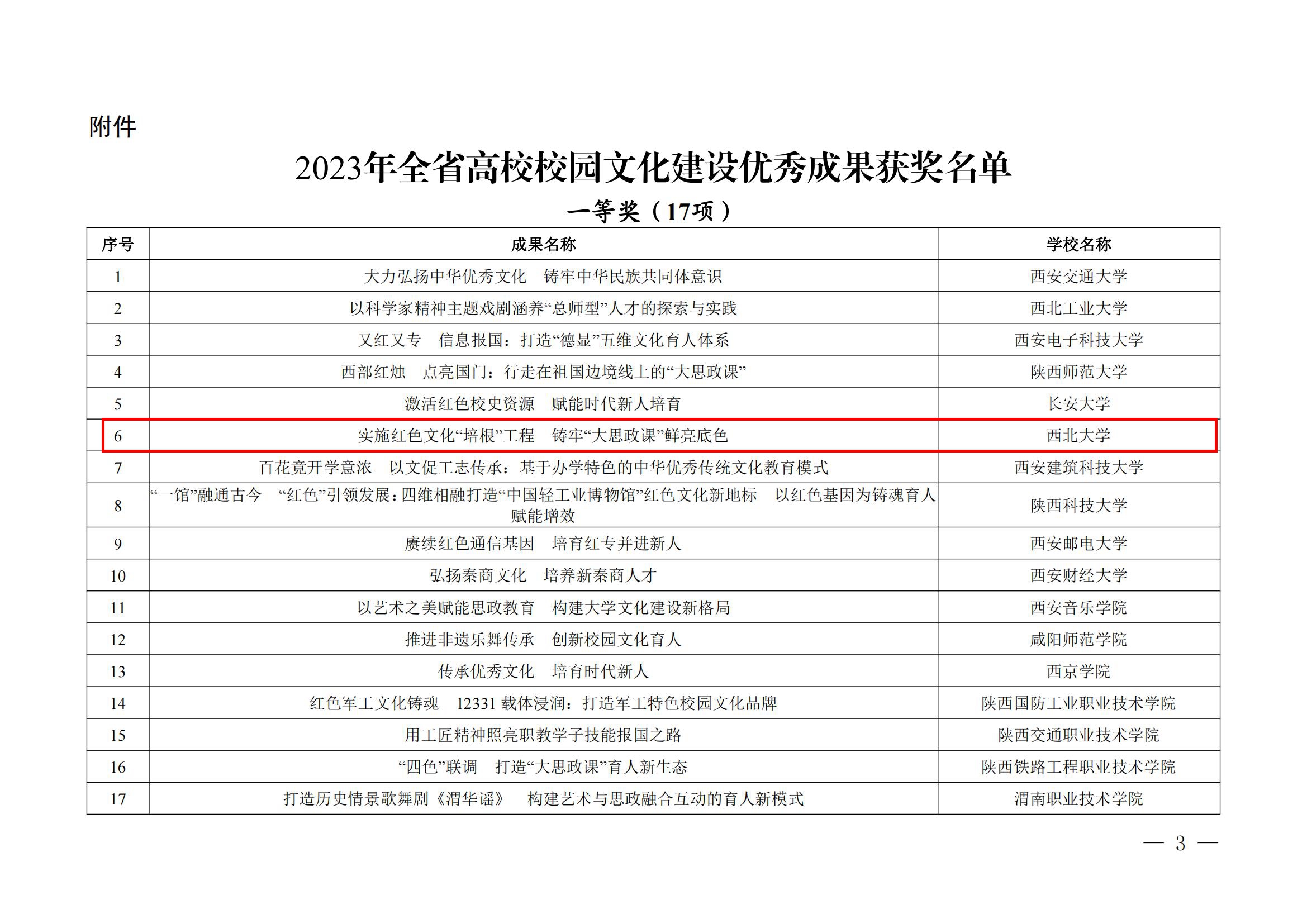 为深入学习贯彻习近平文化思想,充分发挥校园文化在落实立德树人根本任务中的重要作用,持续推进陕西“大思政课”综合改革试验区建设,去年9月,省委教育工委在全省高校开展了校园文化建设优秀成果评选活动。经各高校申报、专家评选、省委教育工委会议研究,共评出一等奖17项、二等奖21项、三等奖25项。