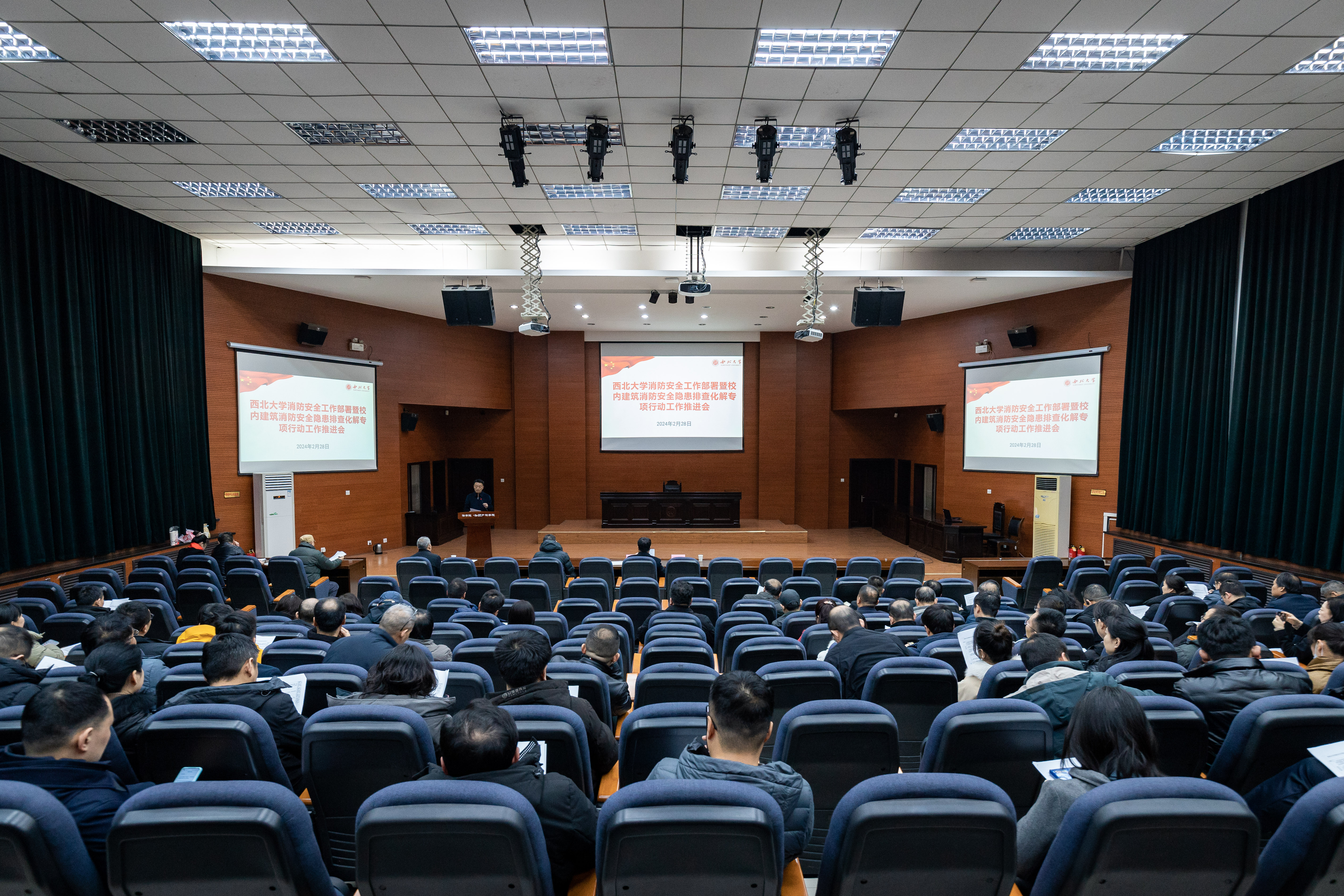2月28日下午,乐鱼网页版页面登录在长安校区召开全校消防安全工作部署会暨排查化解校内建筑消防安全隐患专项行动工作推进会。会议由校党委副书记赵作纽主持,校党委常委、副校长李振海,各单位负责人、院(系)党政负责人、无行政级别实体研究机构、附属医院负责人、专项行动专班全体人员参加会议。