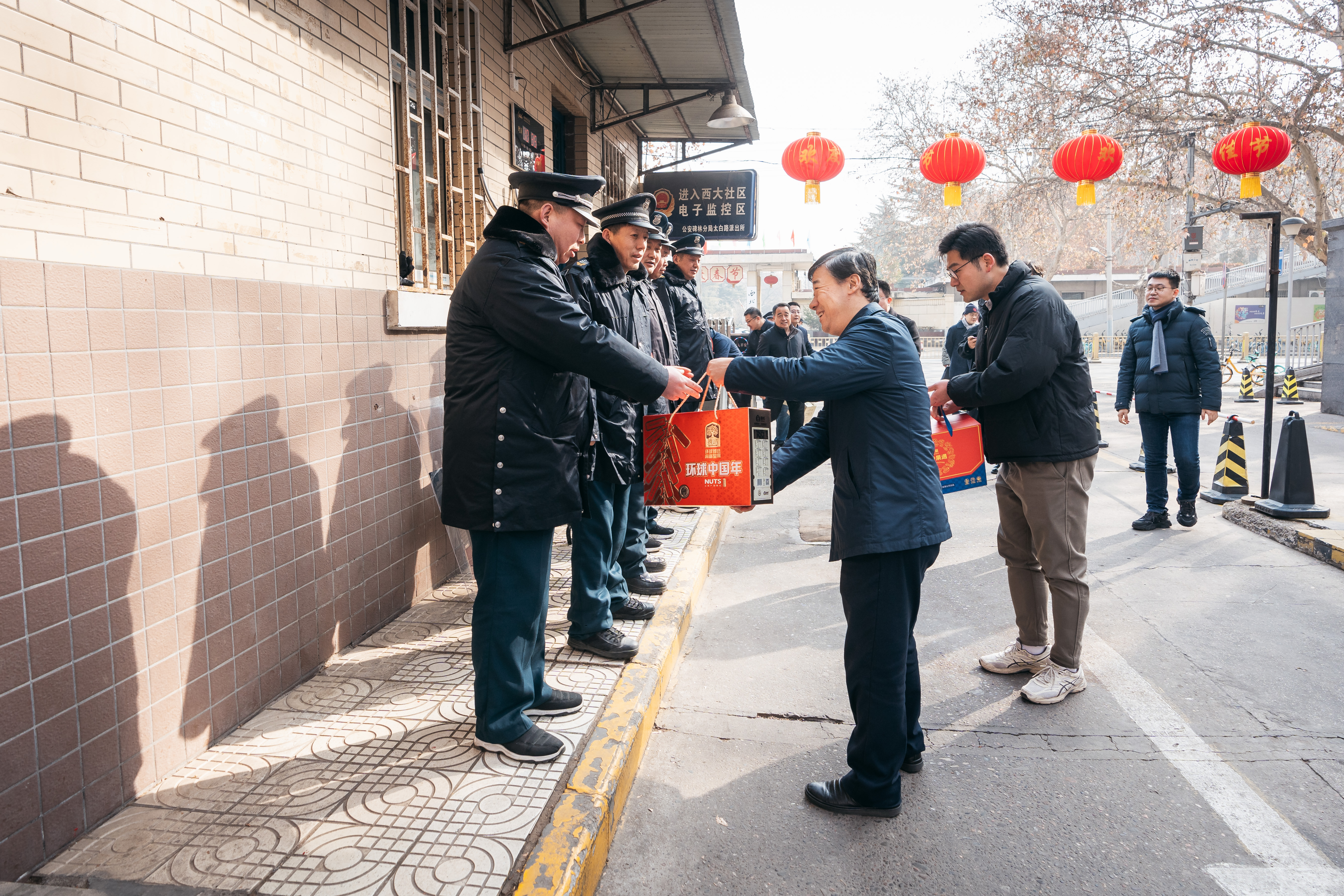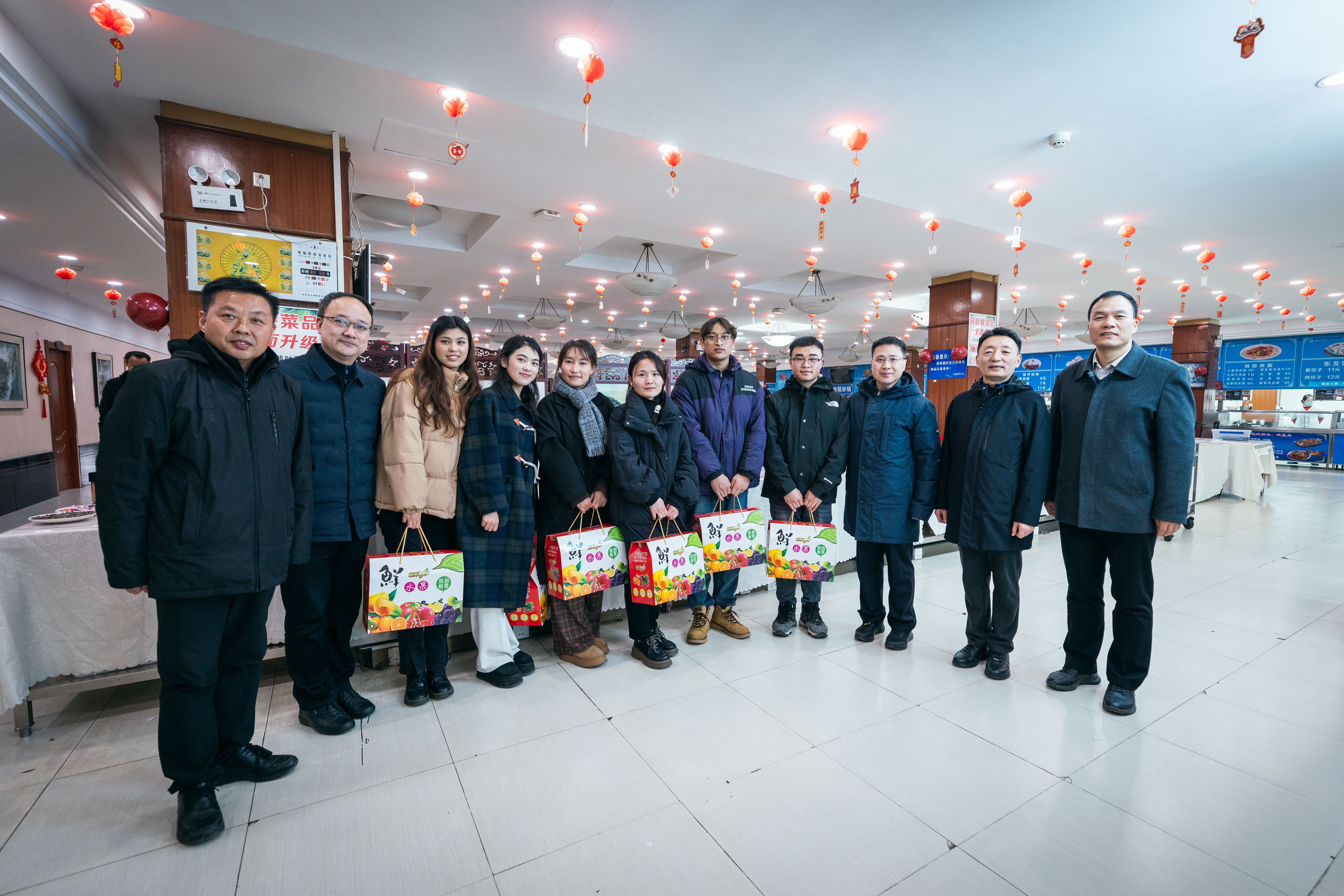 2月9日,农历腊月三十,学校组织了除夕慰问活动,校领导带队看望了长安校区、太白校区在岗职工,并陪同留校学生共进除夕团圆宴。校党委书记蒋林,校党委副书记、副校长孙庆伟(主持行政工作),校党委副书记赵作纽、吕建荣,校党委常委、副校长吴振磊、李振海参加了活动。党(校)办、组织部、校工会、人力部、学工部、研工部、国际学院、后勤集团负责人陪同慰问看望。