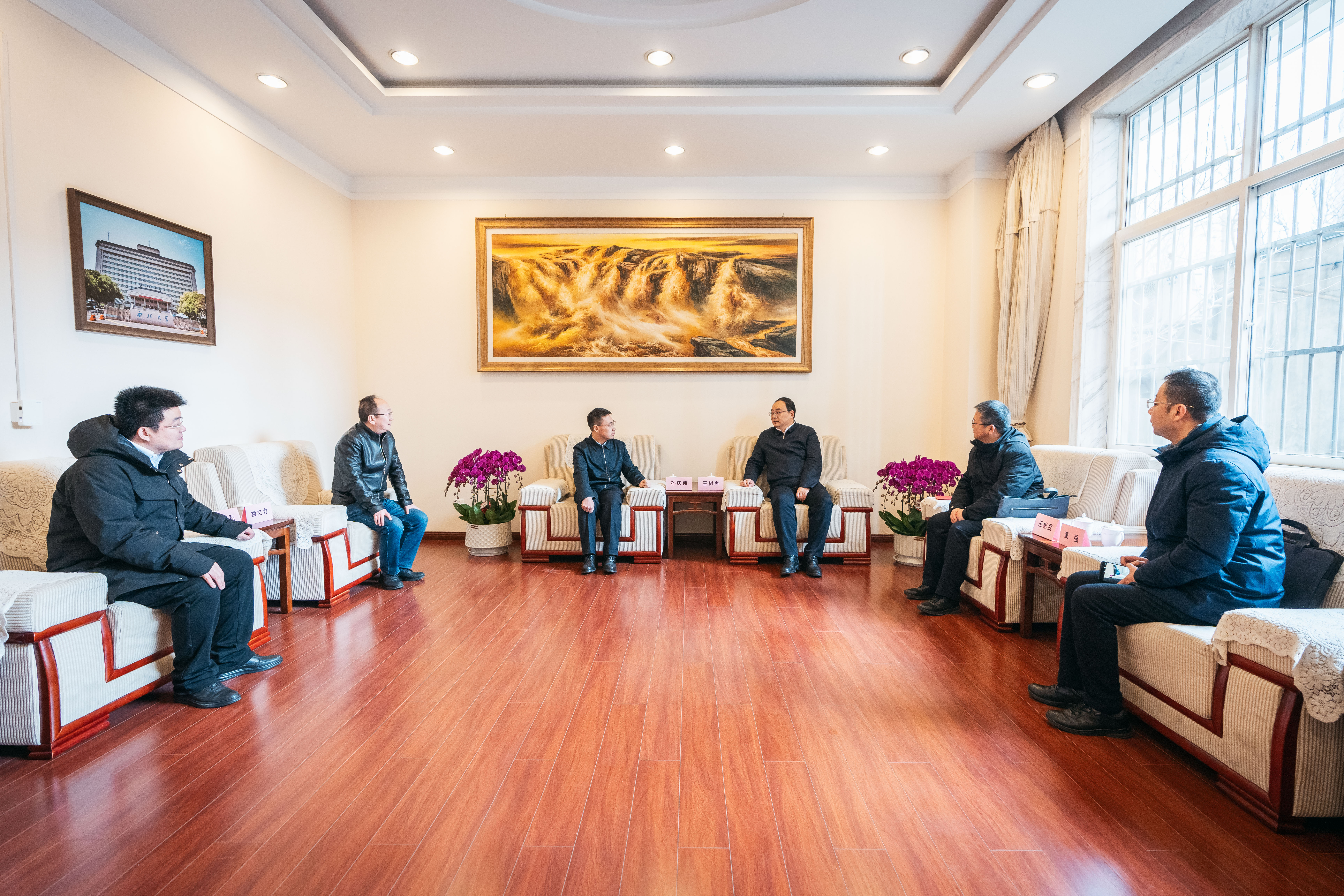王树声首先慰问了国家级人才、乐鱼网页版页面登录党委副书记、副校长(主持行政工作)孙庆伟和国家杰出青年基金获得者杨文力教授,代表省委教育工委、省教育厅向孙庆伟和杨文力致以新春问候,并送上鲜花和慰问品。他与孙庆伟就学校建设发展工作进行了交流,充分肯定了乐鱼网页版页面登录为陕西建设发展所作的贡献,感谢孙庆伟来到乐鱼网页版页面登录工作和对陕西教育事业发展的大力支持。王树声向杨文力教授了解了教学科研工作、物理学科建设发展等情况,勉励他继续努力工作,抓好物理学科建设。孙庆伟和杨文力表示将珍惜机遇努力工作、立足岗位作出贡献,不辜负组织和师生的信任与支持。