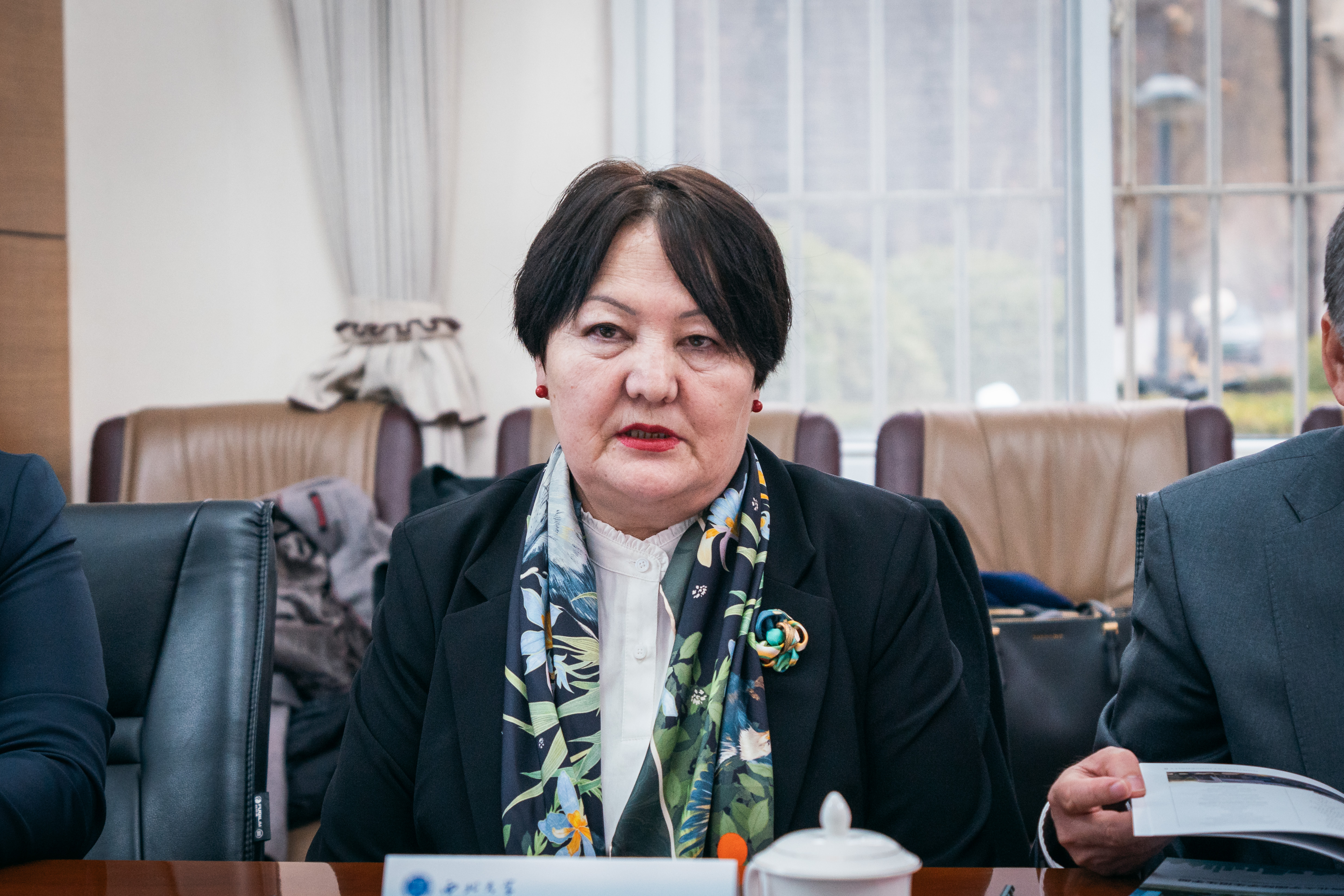 多克杜尔库尔·肯季尔巴耶娃表示,吉尔吉斯共和国与中国是友好邻邦,两国之间经贸往来、人文交流日益频繁。中国培养出的各个领域的优秀人才遍布世界各地,期待双方可以在语言、环境保护、能源、化工、数字教育等方面加强人才培养合作,举办各类夏令营。她本人长期以来积极参与中吉两国的各项合作,并推动一系列中国文化书籍在吉出版。她表示,此次到访的三所吉方大学各有所长,希望可以发挥各自特色与优势,与乐鱼网页版页面登录加强合作与交流。