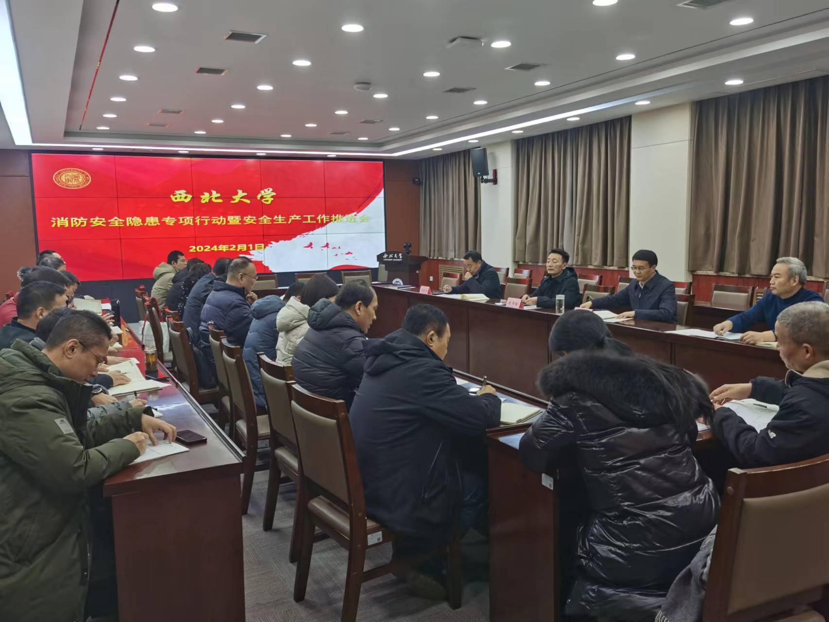 2月1日,学校在长安校区召开消防安全隐患专项行动暨安全生产工作推进会,校党委常委、副校长张远军、李振海以及建筑消防隐患专项行动专班工作人员、安全生产委员会成员单位主要负责人参加了会议,会议由校党委副书记赵作纽主持。