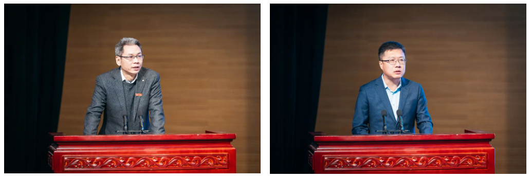 科技处、社科处负责人分别代表学校作自然科学、哲学社会科学科研工作报告,系统总结学校“十四五”以来科研工作取得的成绩和经验,剖析科研工作面临的新形势和存在的问题,提出了2024年科研工作举措,以期推动学校科研事业高质量、内涵式发展。