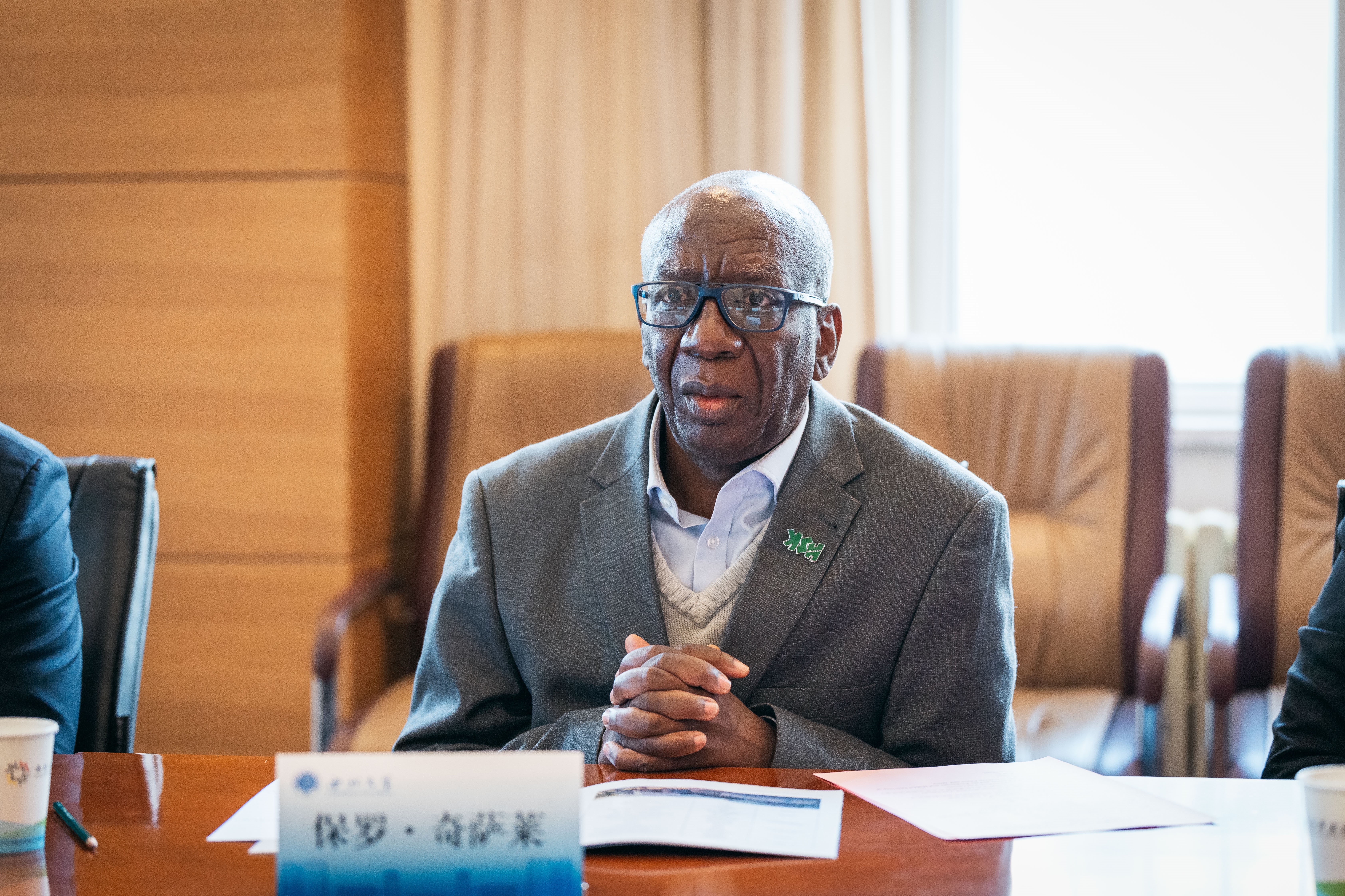 1月11日上午,赞比亚铜带大学校长保罗·奇萨莱教授代表团一行访问乐鱼网页版页面登录。校党委副书记、副校长孙庆伟(主持行政工作)会见代表团并致辞。国际部、经管学院及外国语学院负责人,中东研究所、地质学系相关专家以及乐鱼网页版页面登录非洲留学生代表参加会见。