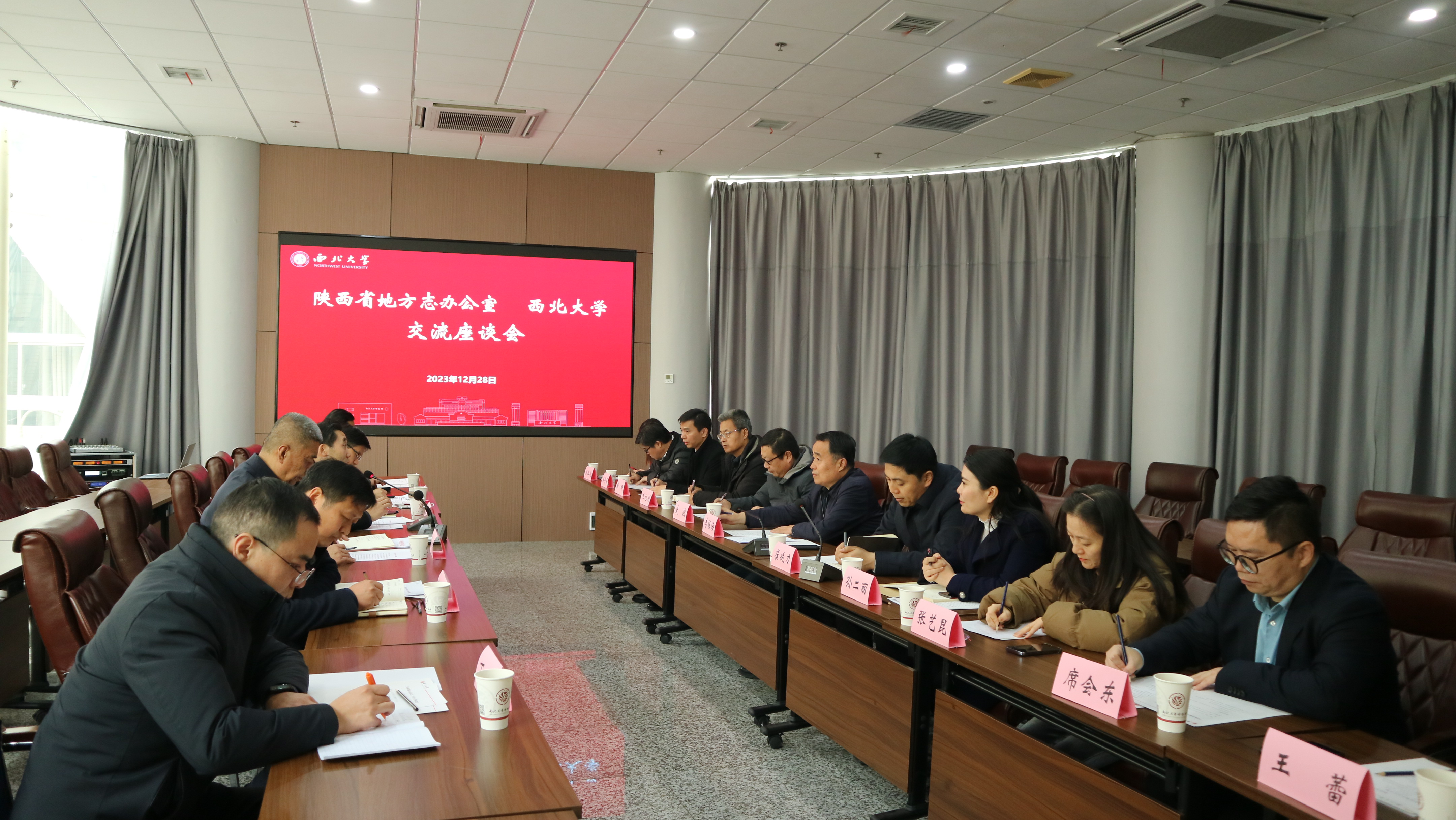 12月28日上午,陕西省地方志办公室党组书记、主任熊晖一行来校调研座谈,校党委常委、副校长李振海,陕西省地方志办公室党组成员、副主任潘斌出席座谈,双方相关单位负责人参加座谈。