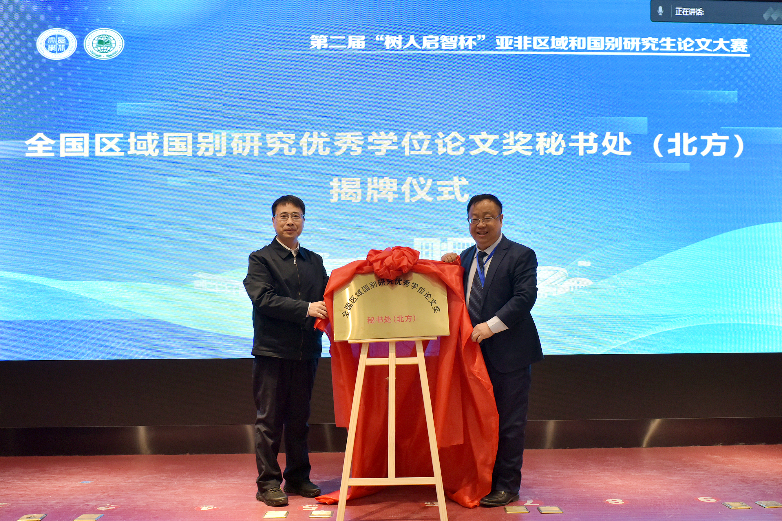 罗林宣布首届“全国区域国别研究优秀学位论文奖”评选活动正式启动并介绍了评选相关情况,宣布在乐鱼网页版页面登录设立“全国区域国别研究优秀学位论文奖秘书处(北方)”,聘任韩志斌为主任、闫伟为执行主任。孙庆伟为罗林颁发了特聘教授聘书。孙庆伟与罗林共同为秘书处揭牌并为获奖选手颁发了证书和奖品。