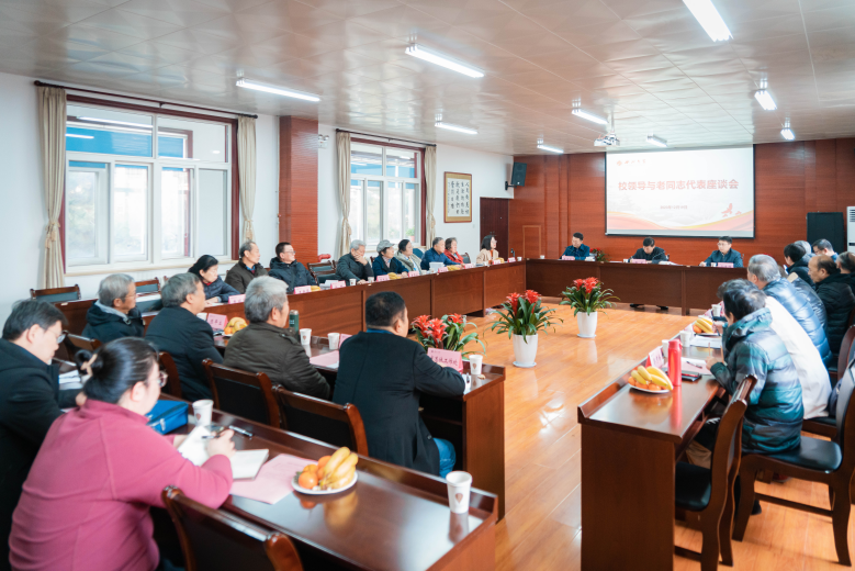 12月19日上午,校领导与老同志代表座谈会在长安校区离退休教职工活动中心举行,校党委书记蒋林,党委副书记、副校长孙庆伟(主持行政工作),党委副书记赵作纽与19名老同志代表欢聚一堂畅叙学校优良传统,共话西大事业发展。党校办、离退休党委、离退休工作处负责人参加座谈,座谈会由赵作纽副书记主持。
