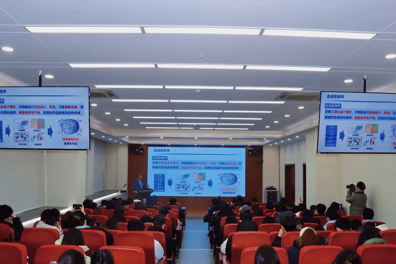 12月17日下午,中国工程院院士、浙江工业大学郑裕国教授做客乐鱼网页版页面登录“杨钟健学术讲座”,为师生作了题为“合成生物学到生物制造:构建细胞到生产物质”的报告。校党委常委、副校长陈富林代表学校致欢迎词,并向郑裕国院士赠送了“杨钟健学术讲座”纪念牌。报告会由化工学院负责人主持,学校师生代表听取了报告。