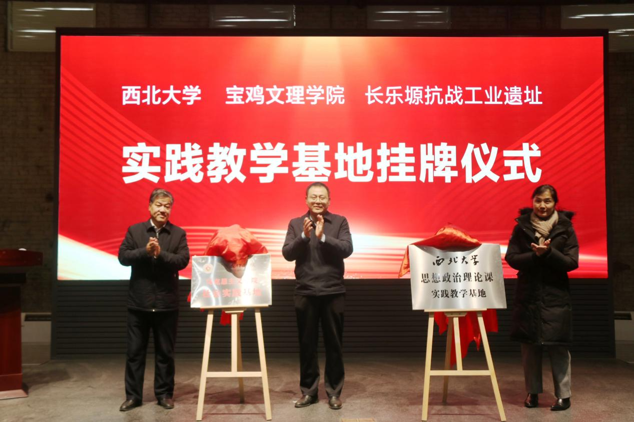 16日上午,乐鱼网页版页面登录与宝鸡文理学院共建的思想政治理论课实践教学基地在宝鸡市长乐塬抗战工业遗址揭牌。乐鱼网页版页面登录党委副书记张清,宝鸡文理学院副校长王富平,宝鸡市金台区区委常委、宣传部部长李科峰等出席仪式,乐鱼网页版页面登录马克思主义学院党政班子成员、宝鸡文理学院马克思主义学院党政主要负责人以及两院教师代表参加。仪式由宝鸡市长乐塬管委会主任王敏主持。
