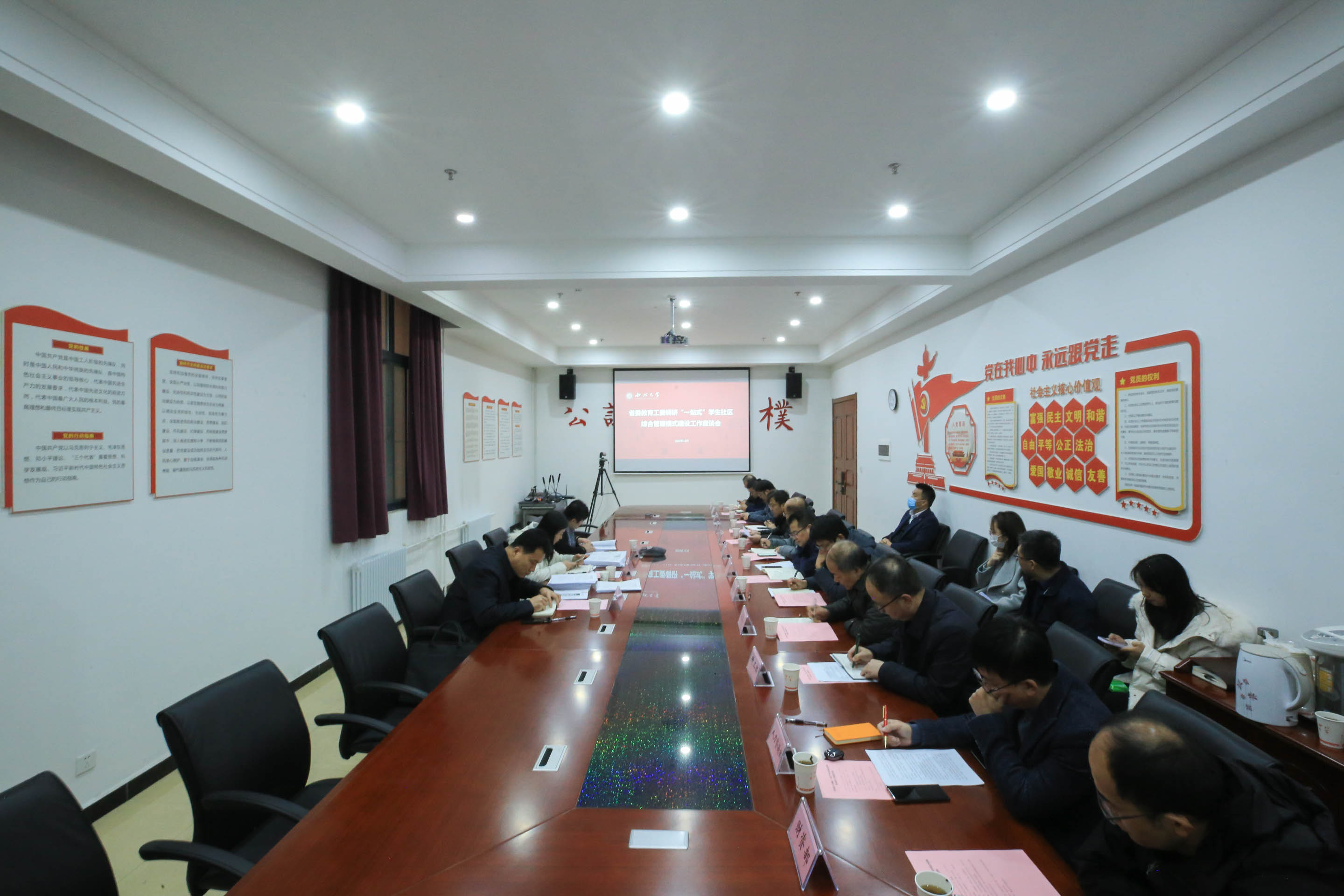 实地调研结束后,调研组查阅了相关材料,乐鱼网页版页面登录相关职能部门与调研组围绕推进“一站式”学生社区建设在日常工作中的问题和难点进行了座谈交流。会上,学工部负责人汇报了“一站式”学生社区综合管理模式建设情况。双方就加强“一站式”学生社区党建引领、协同育人、数智赋能等问题进行了交流探讨。