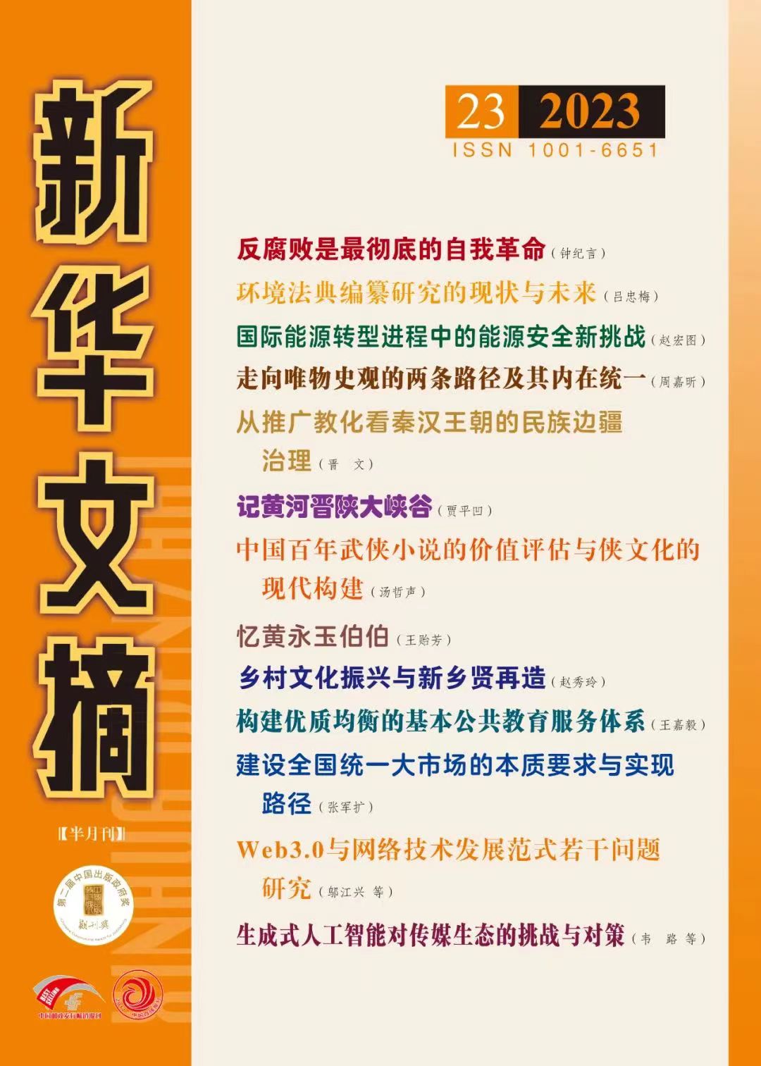 《新华文摘》是由国家新闻出版广电总局主管、人民出版社主办的大型理论性、综合性、资料性文摘类权威期刊,在学术界、思想界及期刊界享有很高的学术声誉和学术地位,其选登文章代表了各领域的前沿成果。