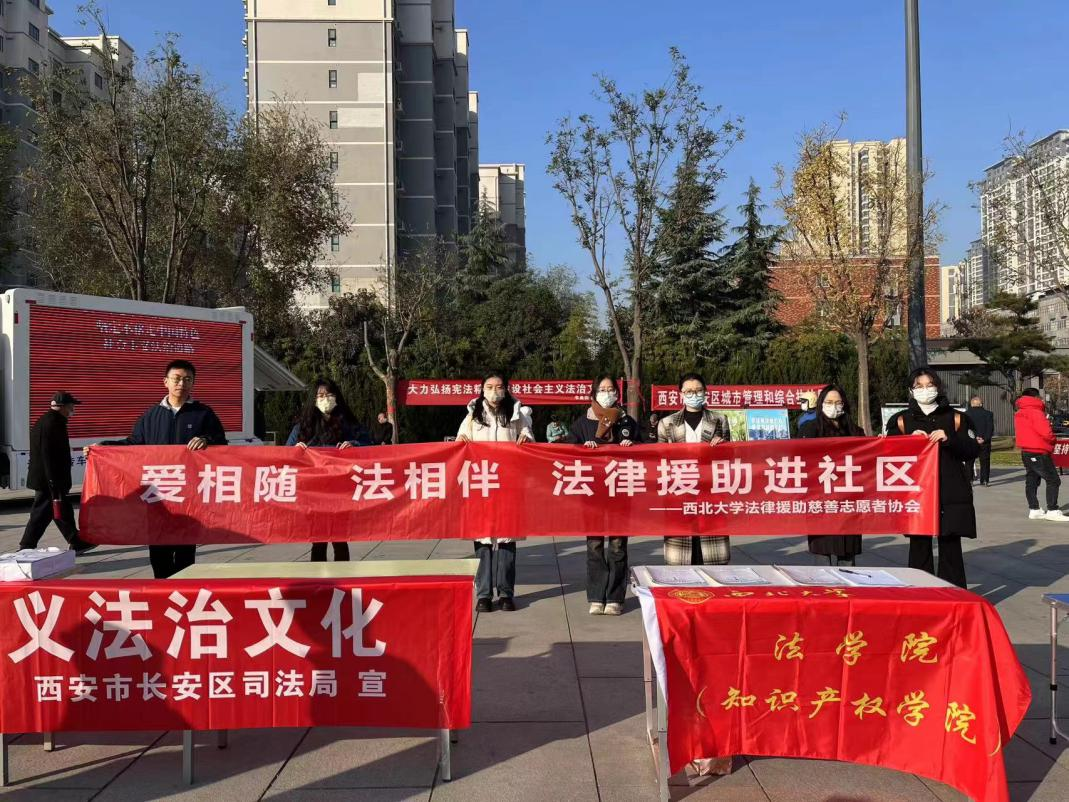 同日,乐鱼网页版页面登录联合长安区司法局、碑林区司法局、华阴市华山镇徐城村村委会等开展基层普法。师生们分别在长安区中央公园、碑林区盛安广场和徐城村村委会大院等地,通过设立法律展板、发放宣传册、现场解答咨询等方式,开展了内容丰富、干货满满的普法宣传活动,提高了国家宪法日在居民群众中的普及率,进一步增强了居民的法治观念。