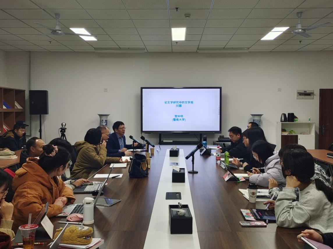 12月1日晚,暨南大学贺仲明教授做客乐鱼网页版页面登录“侯外庐学术讲座”第327讲,为师生作了题为《论文学研究中的文学观问题》的学术讲座。讲座由文学院雷鸣教授主持。