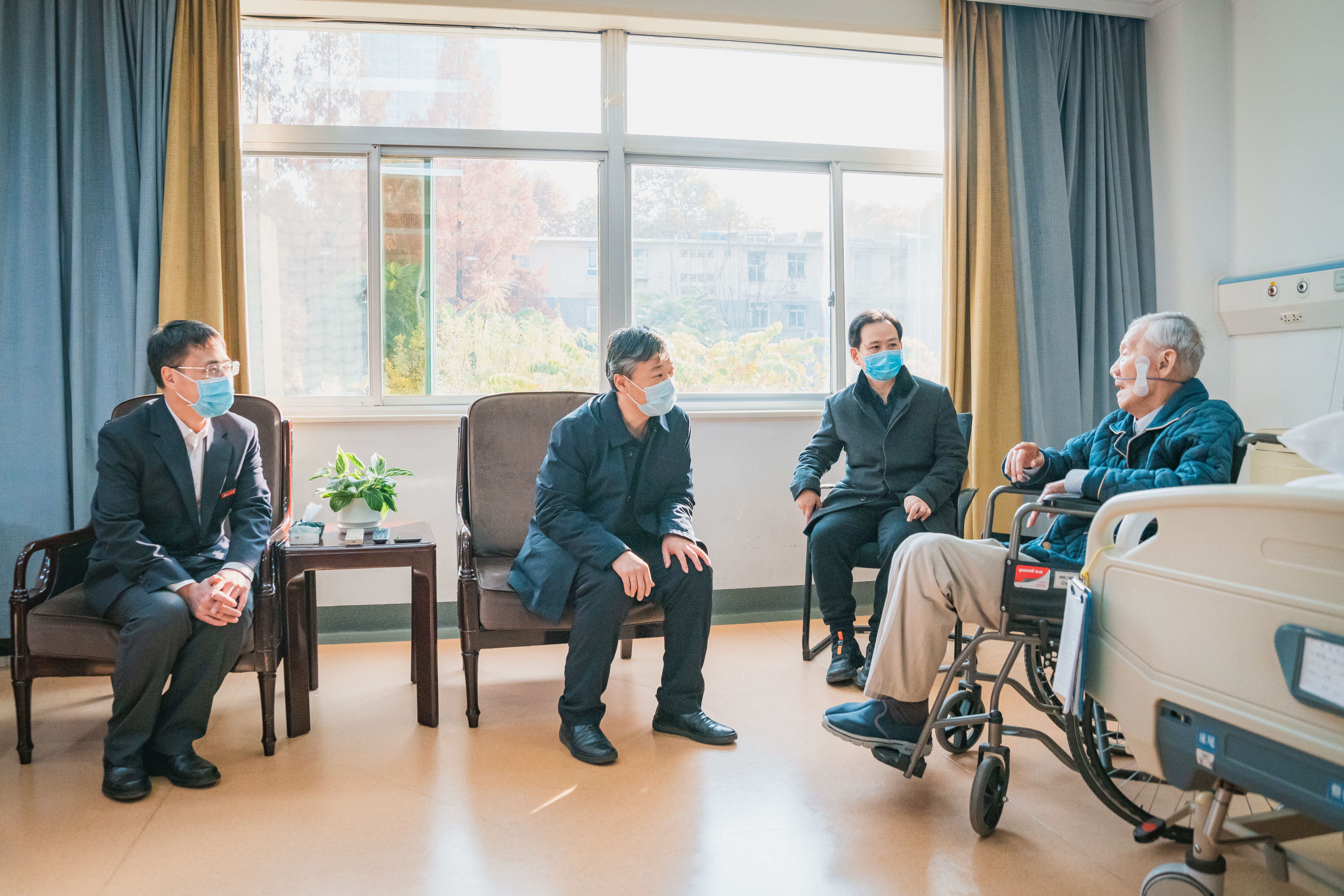蒋林、孙庆伟与张岂之先生进行了简单的交流,简要介绍了学校近期情况,感谢他长期以来对学校各项工作的热情支持和无私奉献,并嘱咐他安心疗养、保重身体。随后蒋林、孙庆伟向医护团队询问了张岂之先生的疗养状况,感谢他们对张岂之先生的周到照顾。(图/钱舟)
