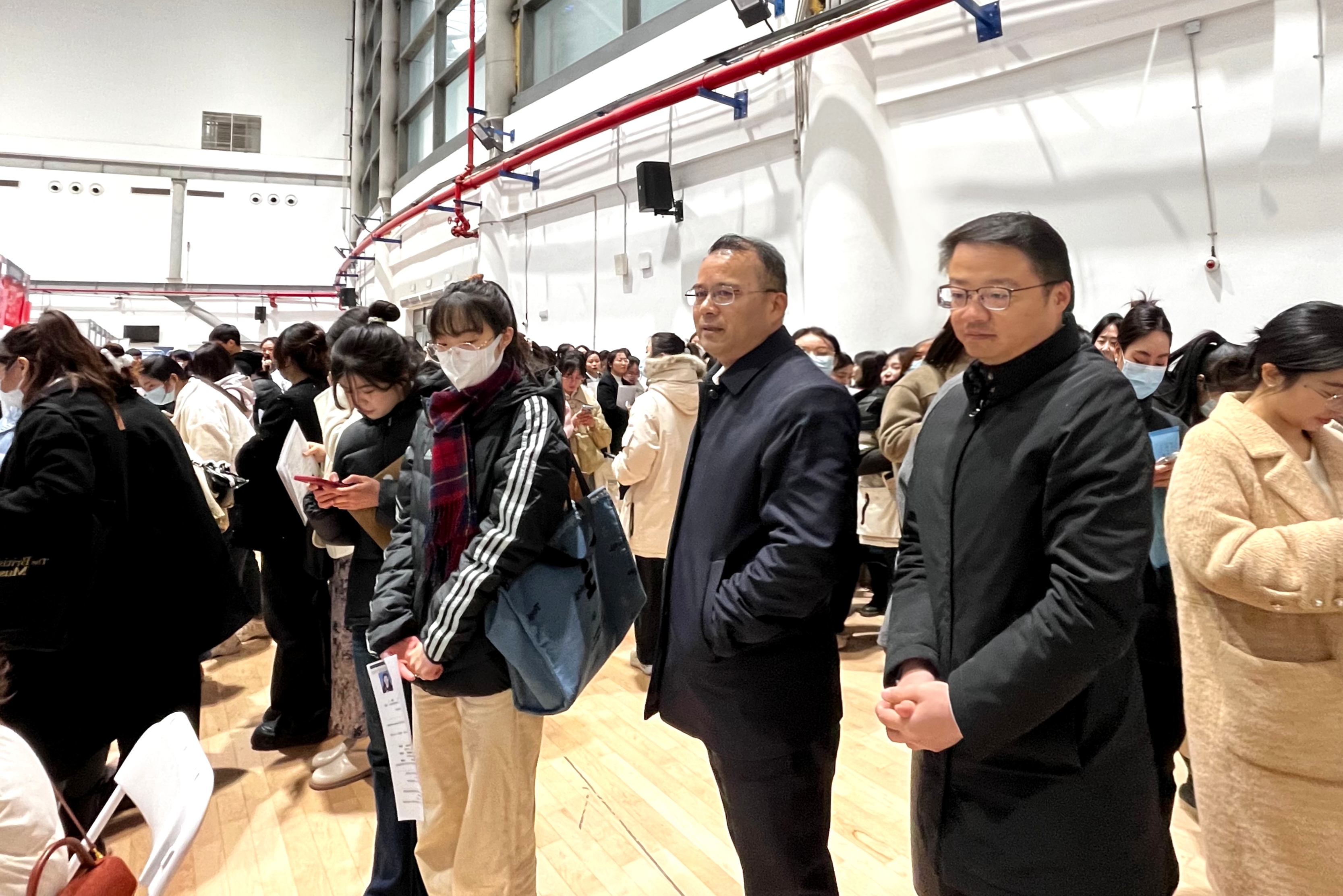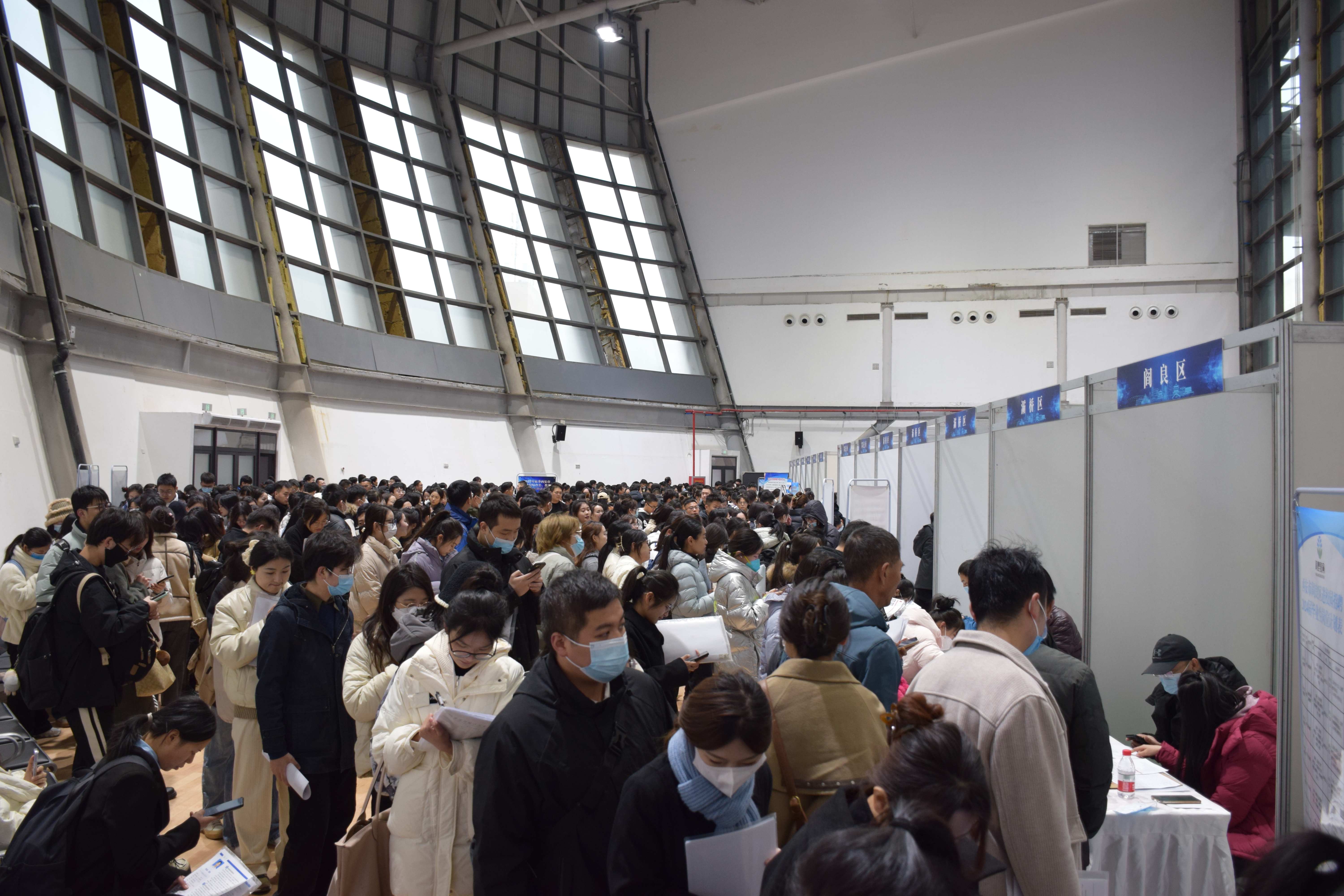 早晨6时许,毕业生们在场馆外自发排起队伍,招聘活动中,毕业生们以饱满的状态与单位代表展开交流。