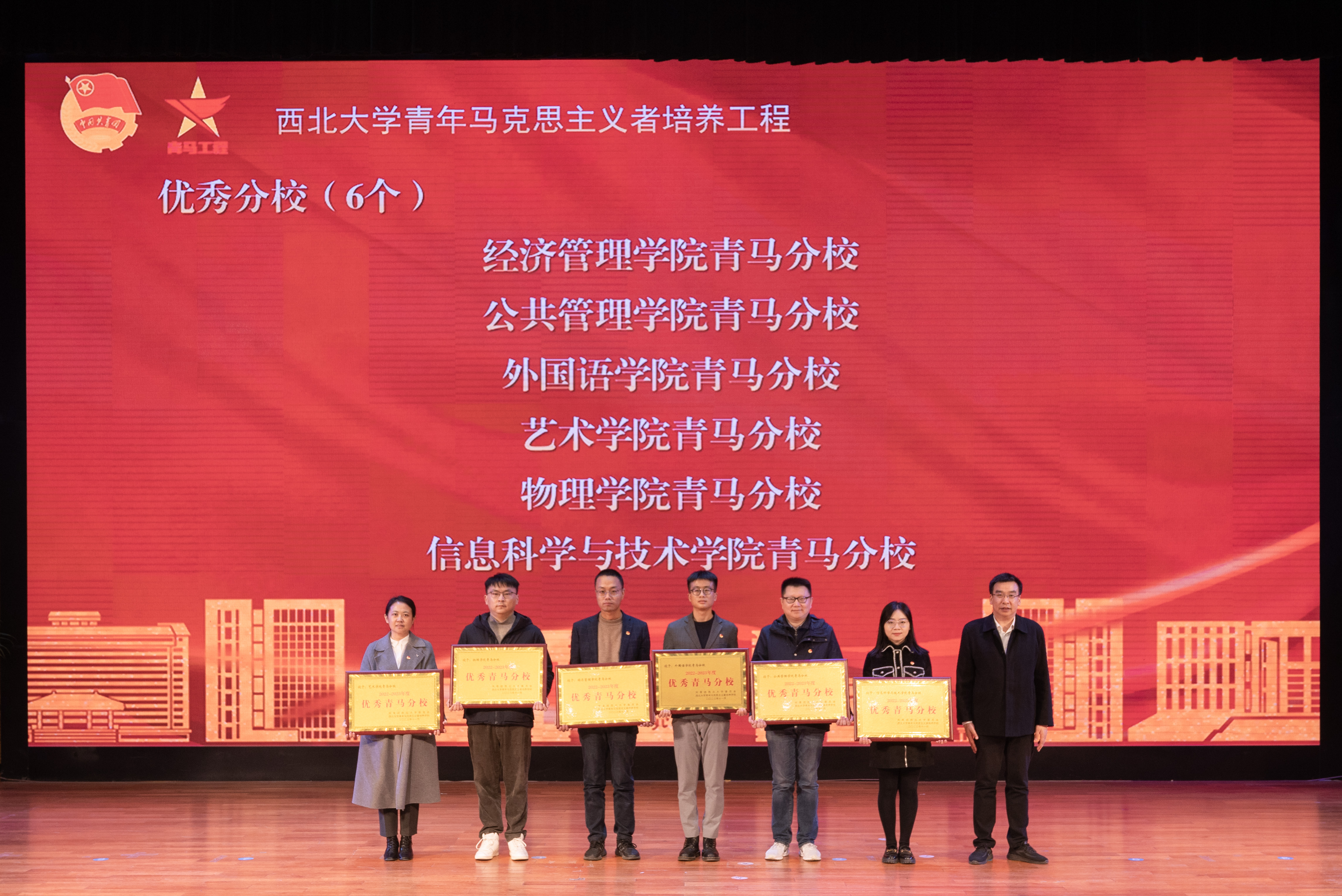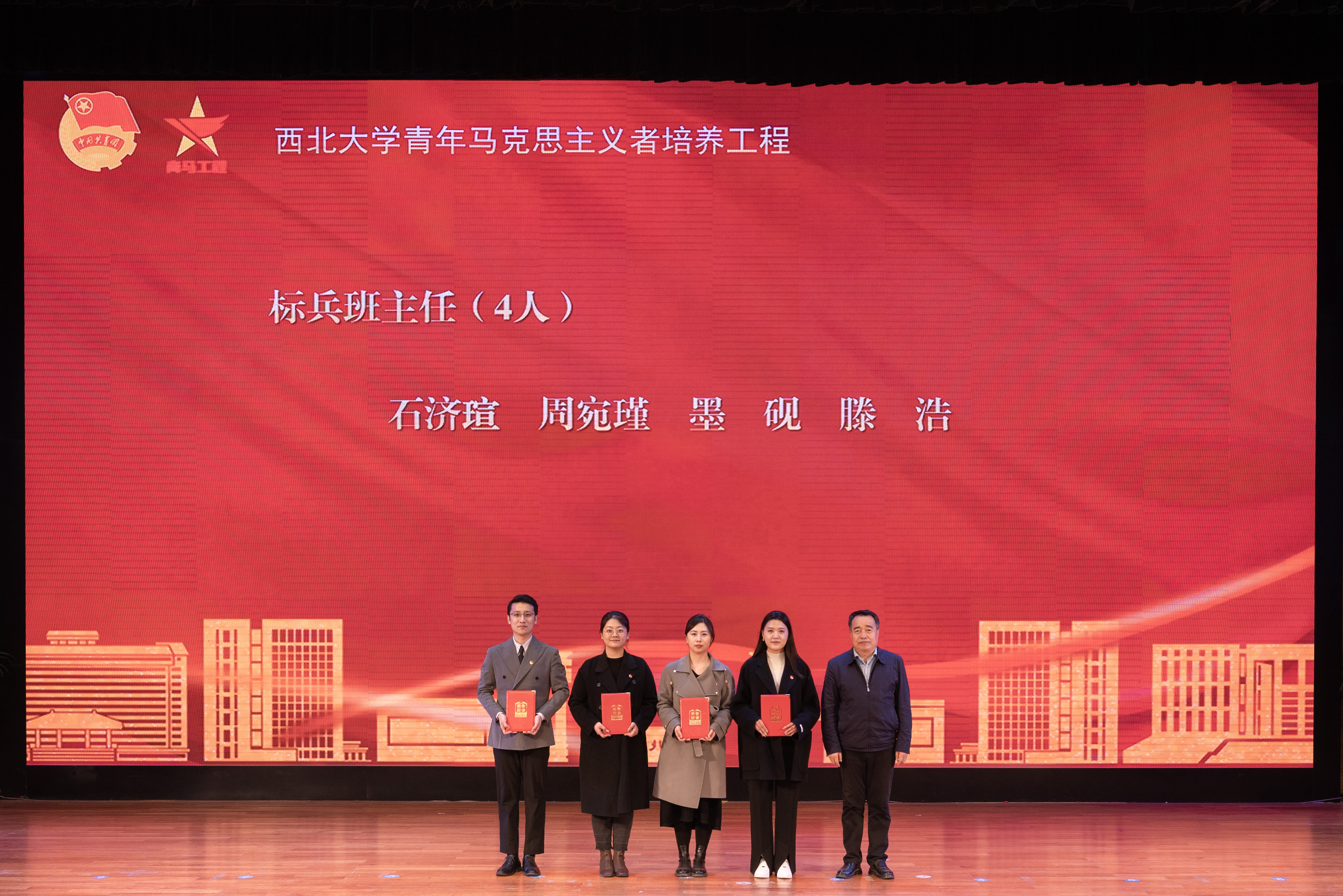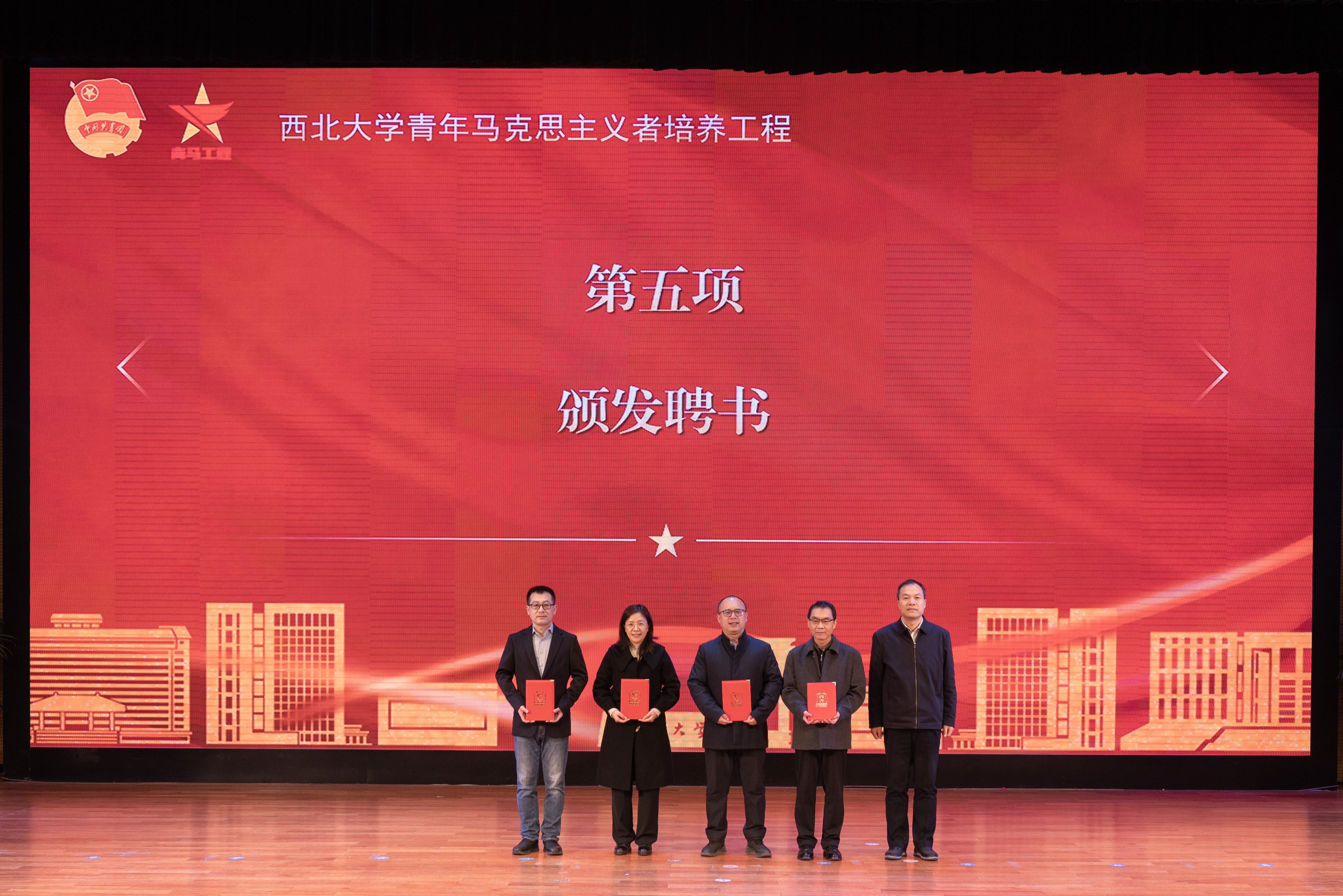 吕建荣为马克思主义学院何博教授、付粉鸽教授、苟昭赟副教授、赵沛副教授等四位老师颁发了青马学校理论导师聘书。
