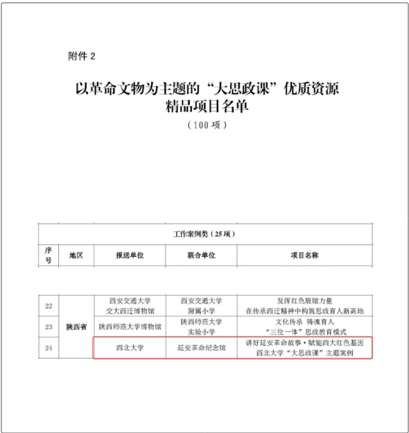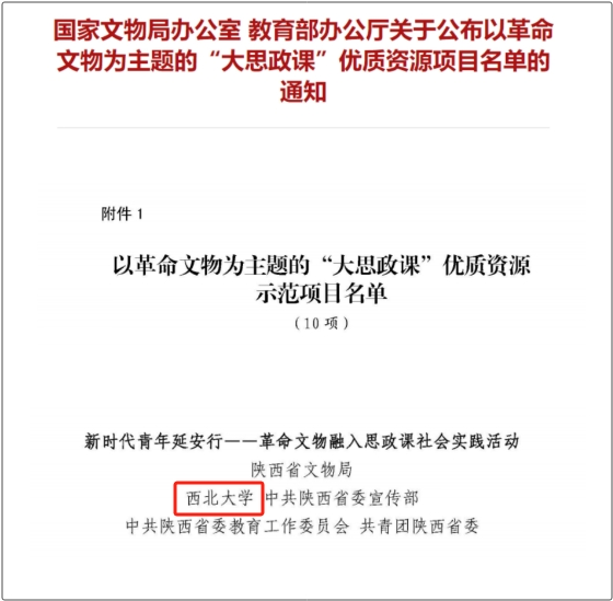 11月27日,国家文物局、教育部共同发布以革命文物为主题的“大思政课”优质资源项目名单。由乐鱼网页版页面登录和省文物局、省委宣传部、省委教育工委、团省委联合申报的“新时代青年延安行——革命文物融入思政课社会实践活动”获评优质资源示范项目,是此次入选的全国10个示范项目之一。由乐鱼网页版页面登录联合延安革命纪念馆申报的“讲好延安革命故事·赋能西大红色基因 乐鱼网页版页面登录‘大思政课’主题案例”获评优质资源精品项目,是此次入选的全国精品项目工作案例类25个项目之一。