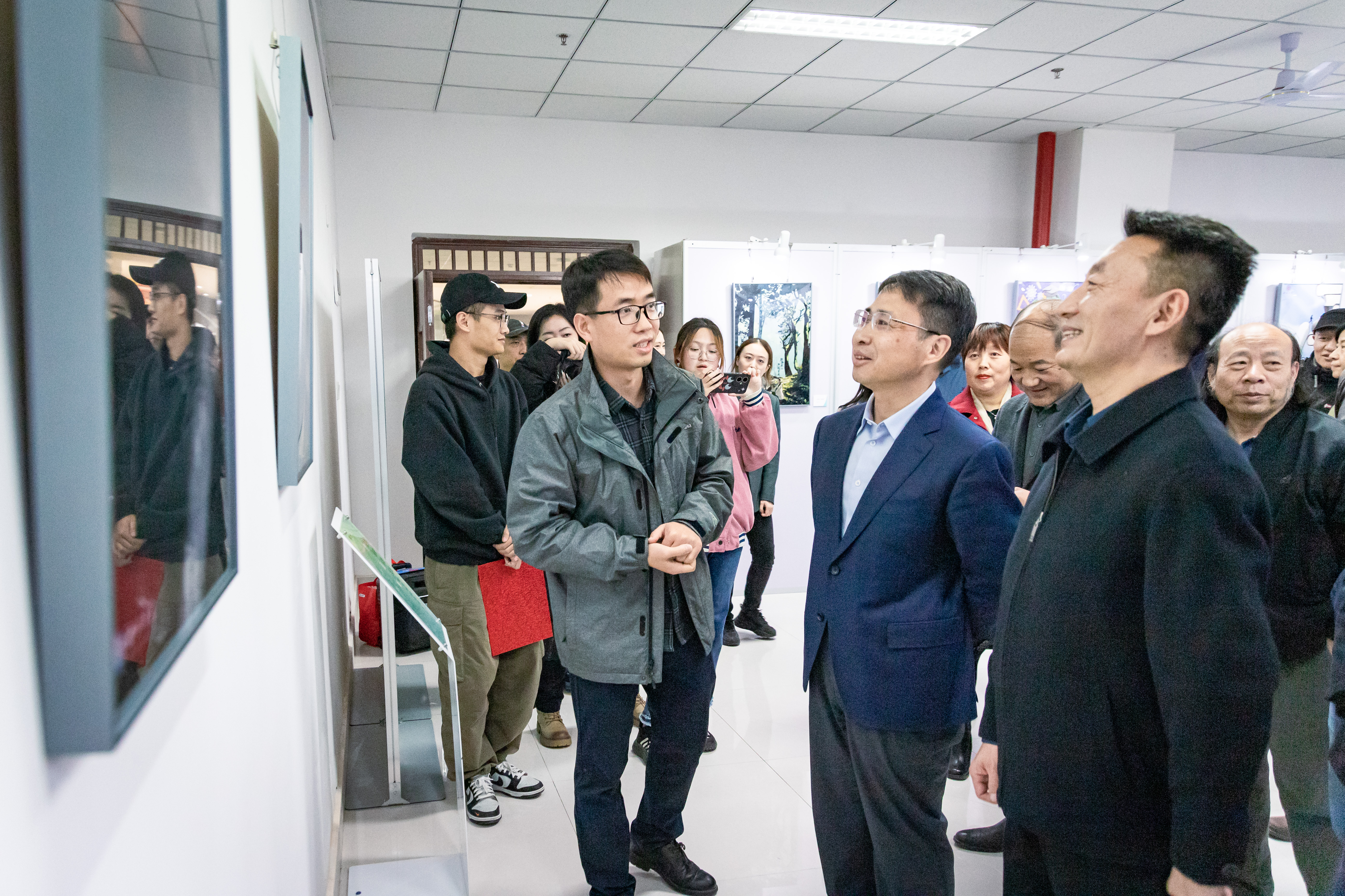 校领导和与会师生观看优秀作品