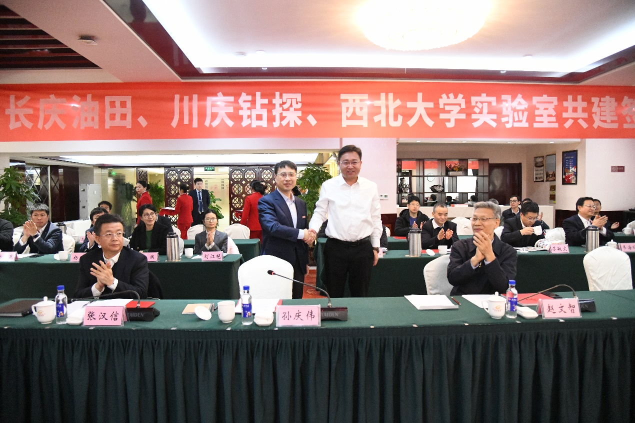 孙庆伟向赵文智院士以及长庆油田、川庆钻探表示感谢。他指出,学校与长庆的合作源远流长,双方合作在科学研究、人才培养和社会服务等方面取得了丰硕成果。他希望校企双方以此次共建实验室为契机,进一步对标国家战略要求,创新体制机制,加强资源共享,深化融合发展,共同建设高水平科技创新平台,为推动我国油气理论研究和勘探开发取得更大突破,为更好保障国家能源安全贡献新的更大力量。