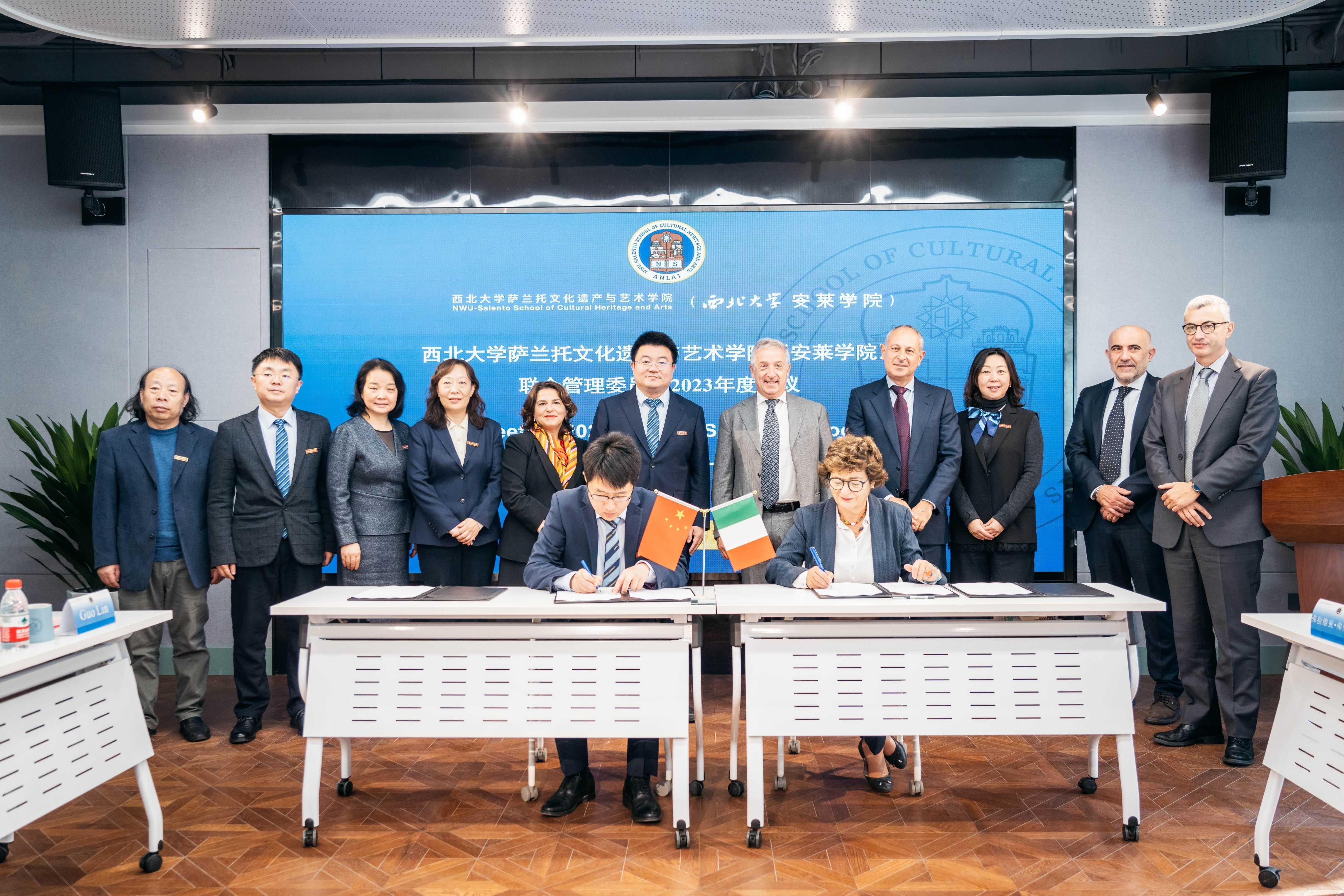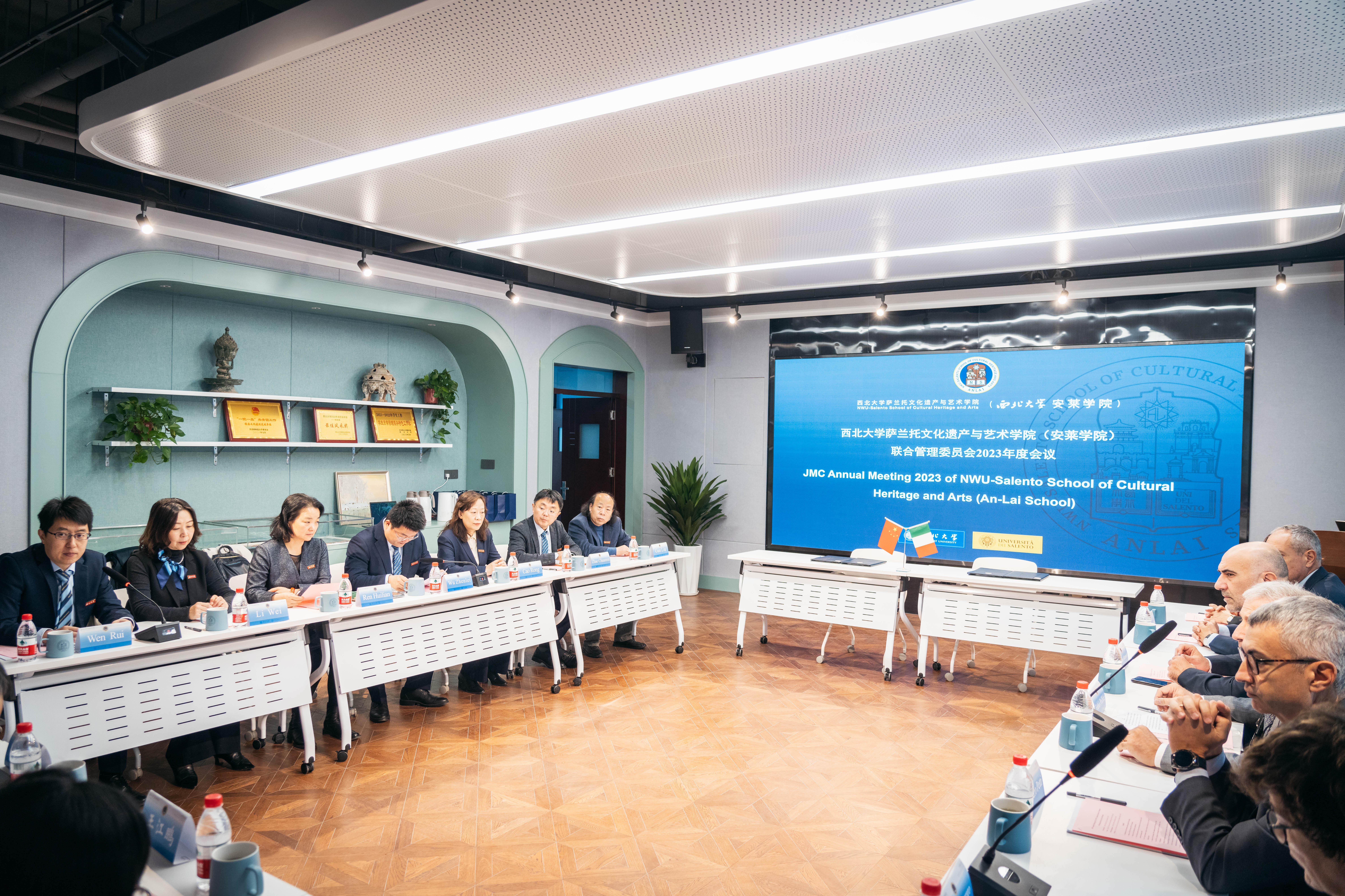 联管会年度会议上,吴振磊和波利切代表两校致辞,安莱学院负责人和意方相关负责人汇报学院运行情况及意方工作情况,并作为两校代表签署人才培养方案(修订版)。双方另就联管会成员变更、意方常驻人员选派、意方线下课程安排、拓展校际合作等议题进行了商议。