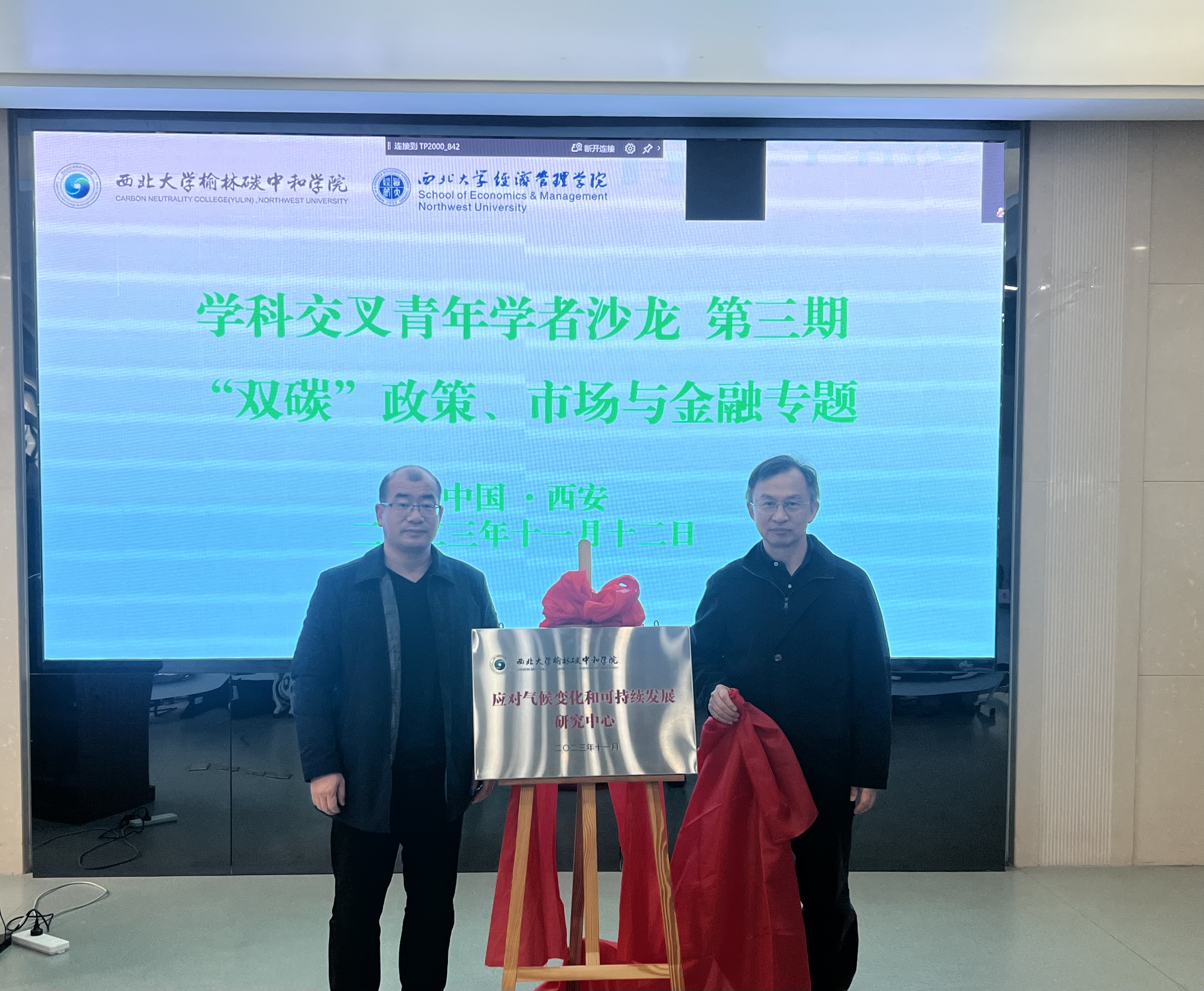 沙龙第一阶段举行了交叉研究平台“应对气候变化和可持续发展研究中心”的主任聘任仪式和揭牌仪式。中心将聚焦温室气体排放的核查与披露、ESG与可持续发展及其标准、碳资产管理与气候投融资、气候变化的灾害治理与应对等重点方向展开科学研究和人才培养工作,为服务双碳战略,助力地方经济社会绿色低碳高质量发展贡献力量。