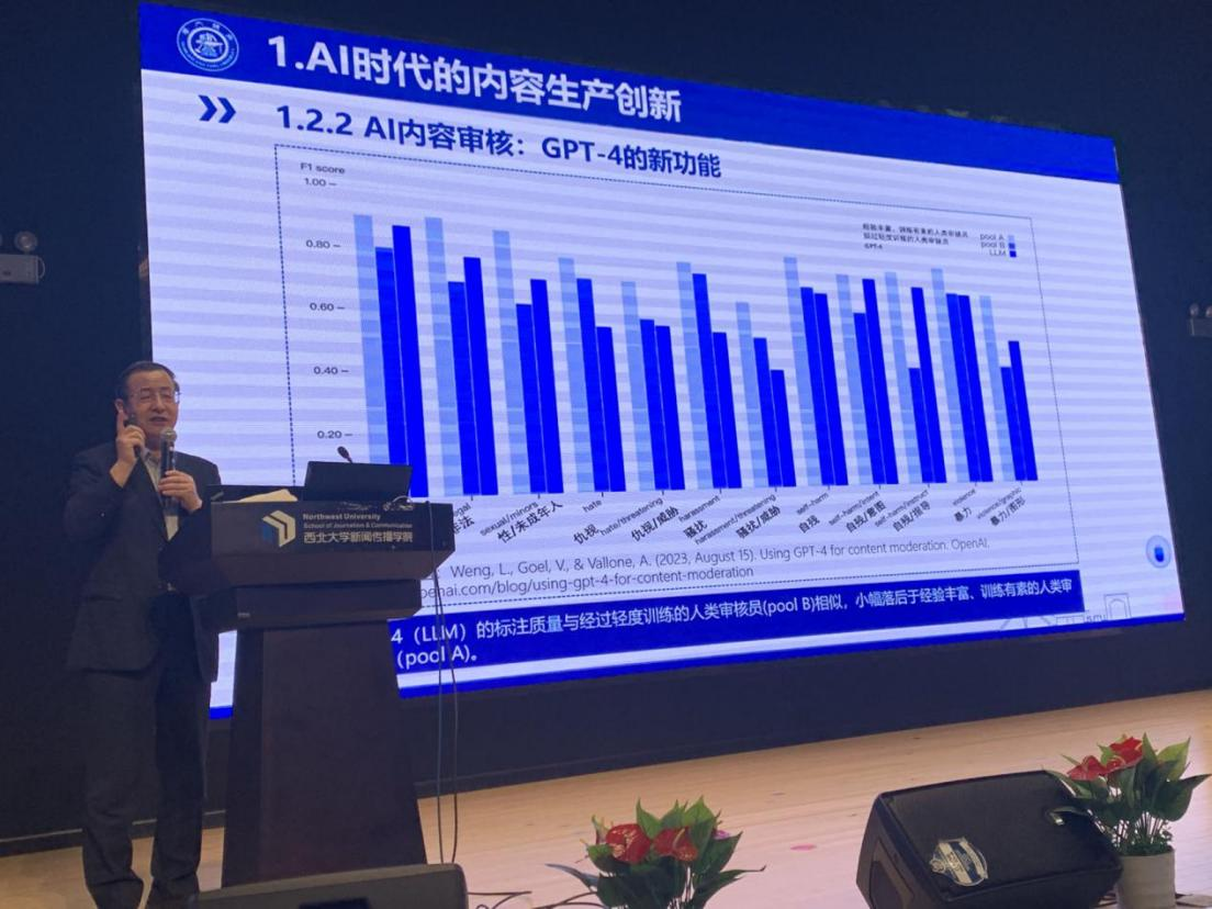 李本乾认为,人工智能时代,算力(Computing Power)、算法(Algorithm)和数据(Data)三位一体共同构成了这个领域的基础设施。人工智能的机器生产内容、算法与智能推荐、智能语音与语义识别等,将推动传播活动从移动化、社交化到智能化、数据化的变革,适应这一变化的传播创新刻不容缓。他运用丰富的案例讲解了AI时代如何进行内容生产方式的创新,并指出,通用性GPT模型进一步释放了传播生产力,提高了传播生产效率,重塑媒体的整个生产流程。李本乾提出,传播生产应当构建以大数据和人工智能为核心的技术生态体系,基于媒体行业自身的数据构建具有针对性的人工智能系统,提升媒体与人工智能结合的成熟度。最后,他从媒体经营的平台变迁、内容形式变迁、功能变迁和收入变迁四个方面分析了媒体经营模式的变迁过程。