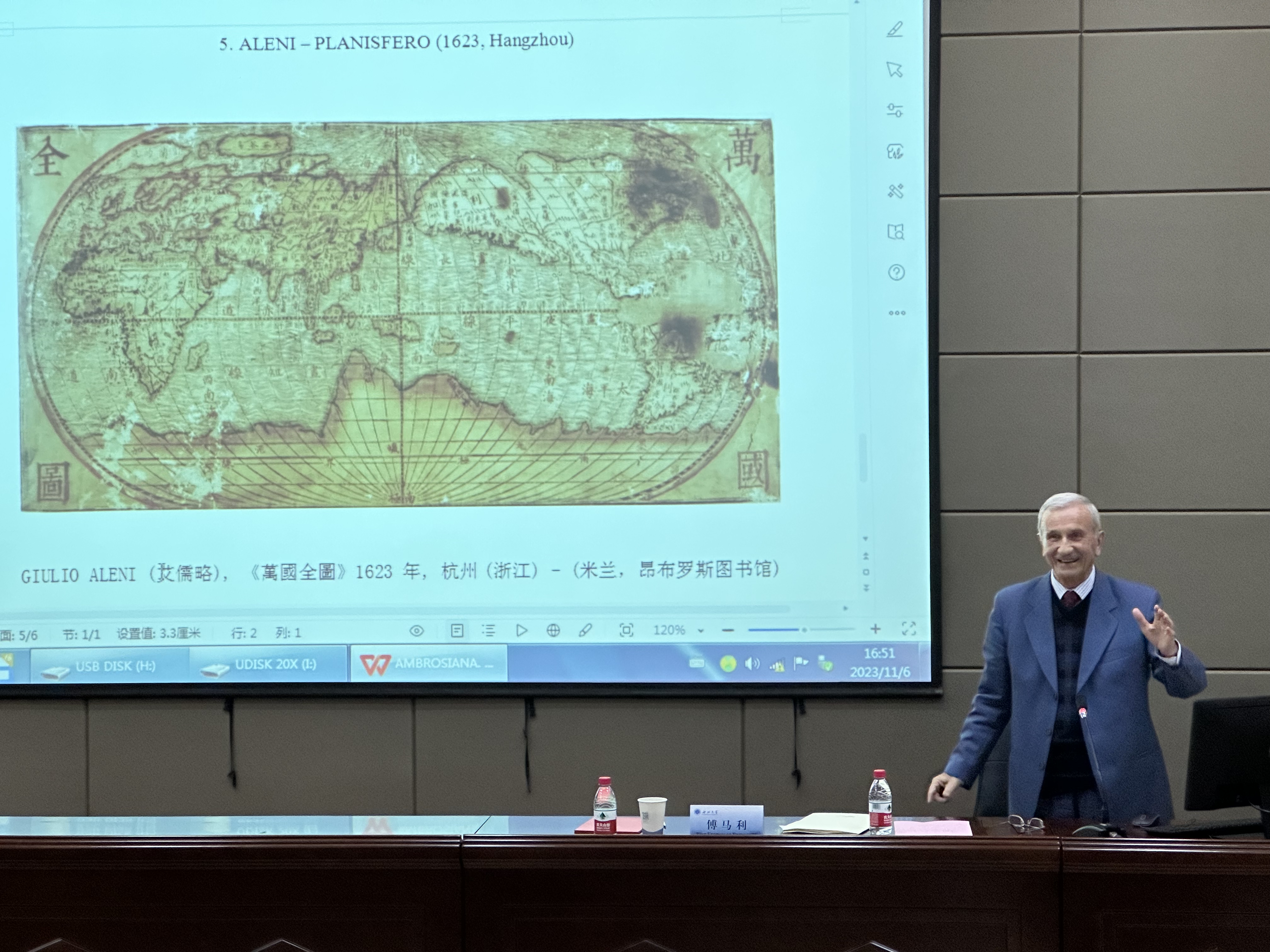 随后,傅马利作了题为“东西对话在米兰昂布罗修图书馆”的讲座。他展示了昂布罗修图书馆的相关文献与图片资料,将古希腊罗马文明与中华文明进行对比,阐释了加强东西文明对话,积极推动东西文明交流互鉴的重要意义,并从一位欧洲汉学家的视角,解读了“一带一路”对经济、科技、教育、文化等多领域交流融合做出的巨大贡献。