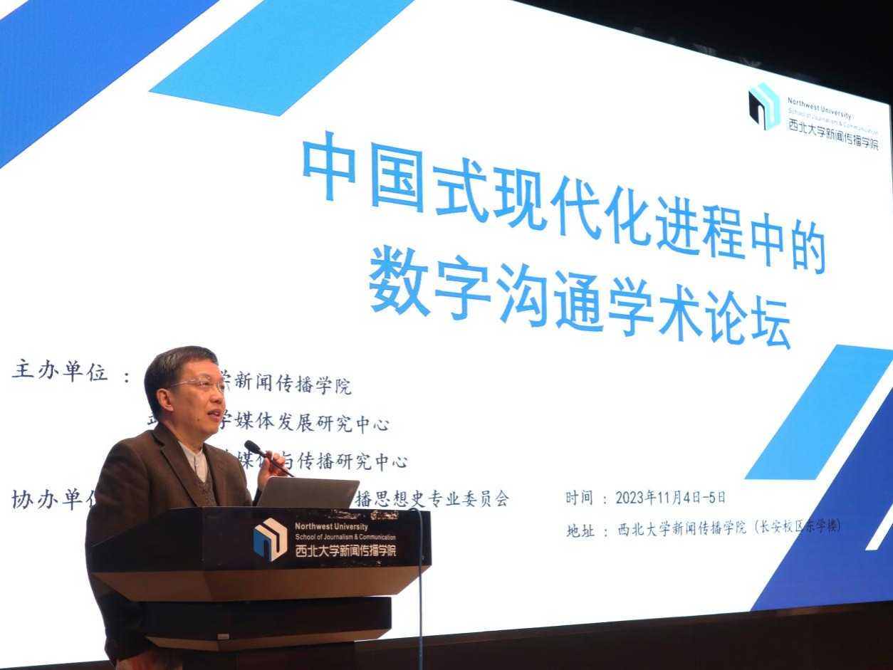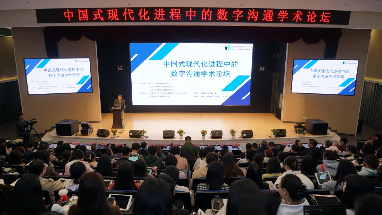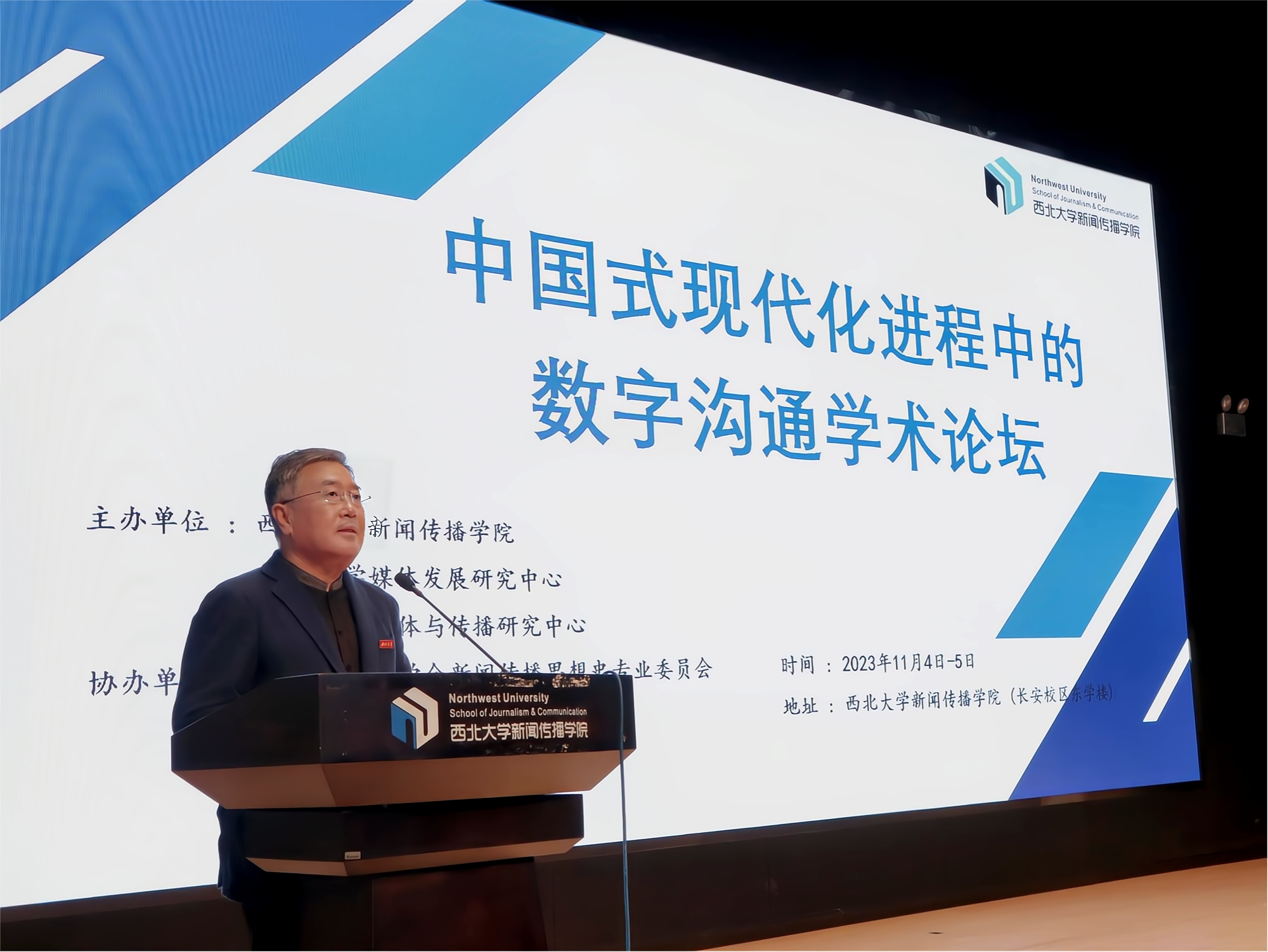 新闻传播学院负责人在致辞中介绍了学校在中国式现代化进程中的数字沟通研究领域的研究特色,并表示,未来将继续聚焦数字沟通的中国经验,为社会发展做出应有贡献。
