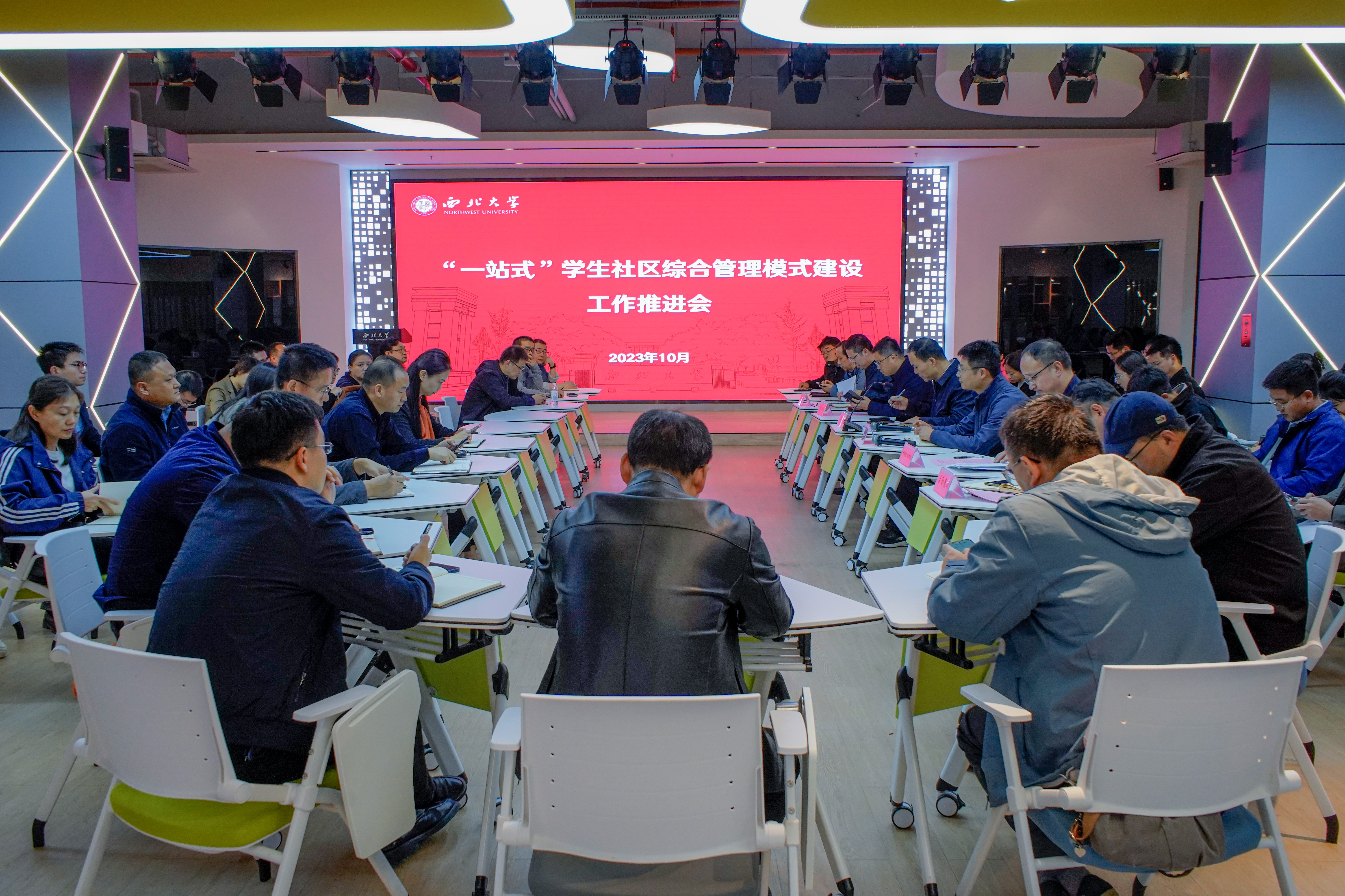 为深入推进“一站式”学生社区综合管理模式建设工作,10月26日下午,乐鱼网页版页面登录在长安校区召开“一站式”学生社区综合管理模式建设推进会。校党委副书记吕建荣,组织部、学工部、研工部、校团委、后勤集团负责人,院(系)学生工作负责人、团委书记参加会议。会议由吕建荣主持。