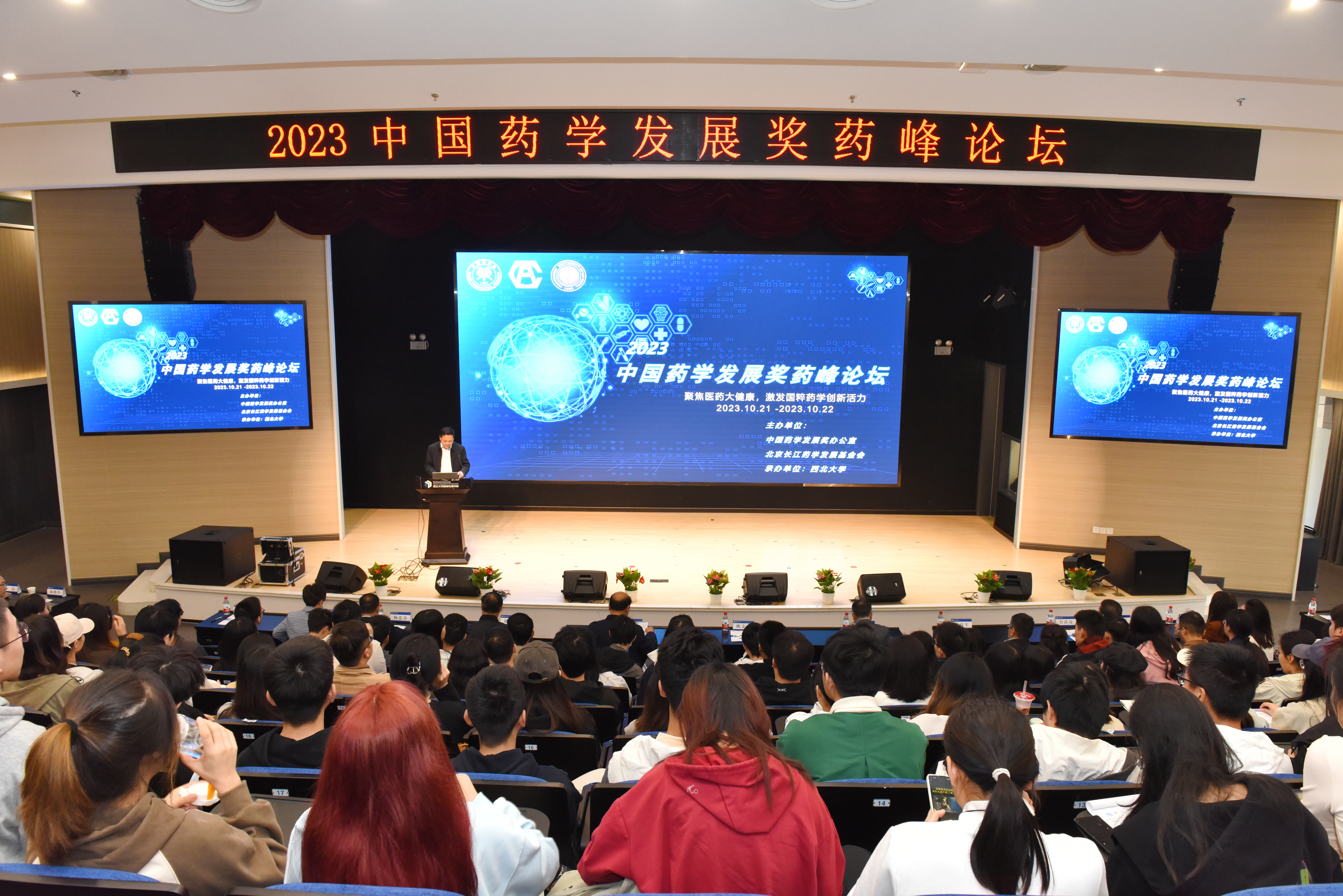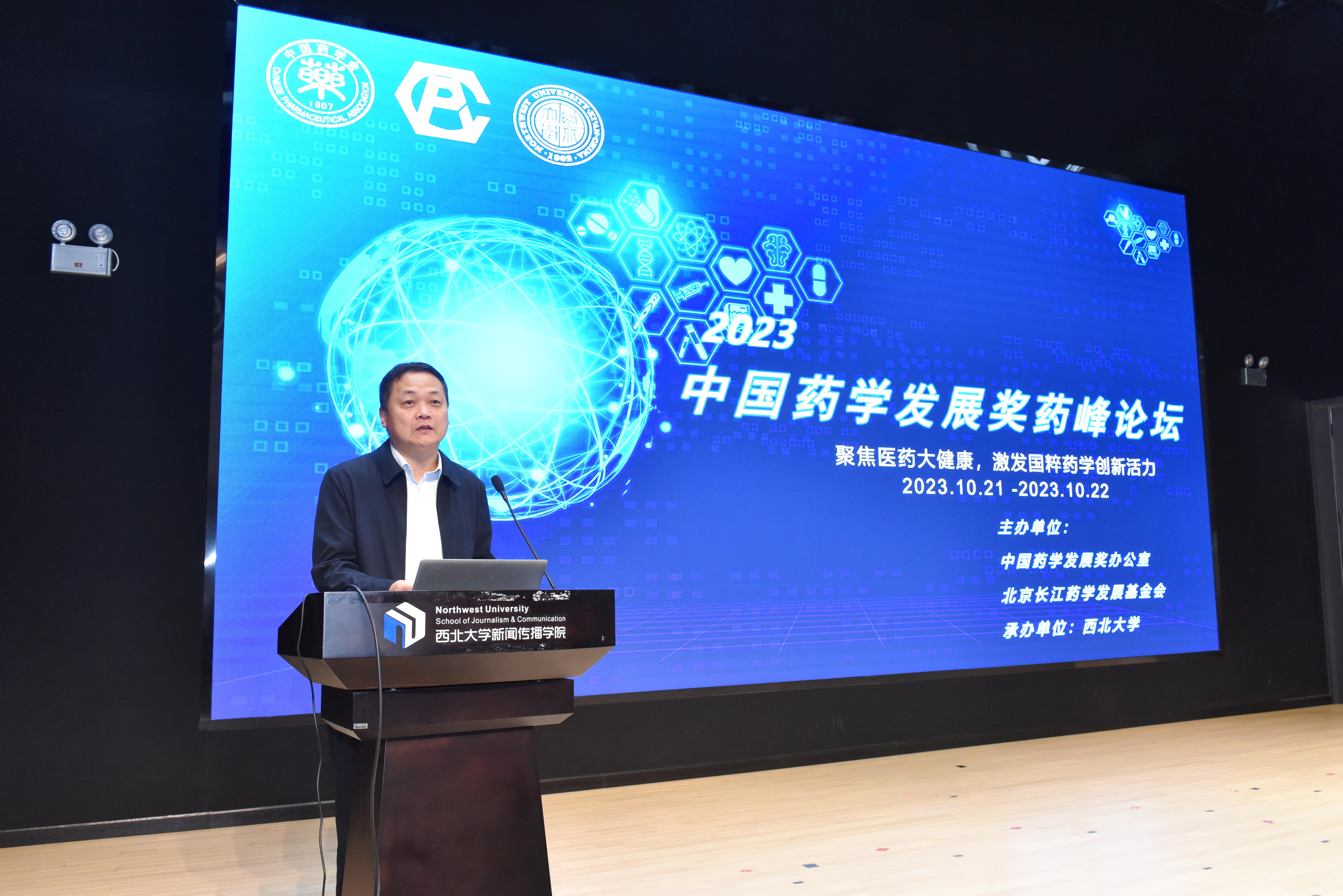 10月22日,由中国药学发展奖办公室和北京长江药学发展基金会主办,乐鱼网页版页面登录承办的“中国药学发展奖药峰论坛”在长安校区举办。此次论坛以“聚焦医药大健康,激发国粹药学创新活力”为主题。中国工程院院士陈志南、中国药学发展奖奖励办公室主任郁静、陕西省委教育工委书记刘建林、陕西省科技厅副厅长赵怀斌,乐鱼网页版页面登录校长郭立宏出席会议。陕西省药学有关学会、药企、高校代表,学校科技处、化工学院师生等100余人参加会议。开幕式由校党委常委、副校长陈富林主持。