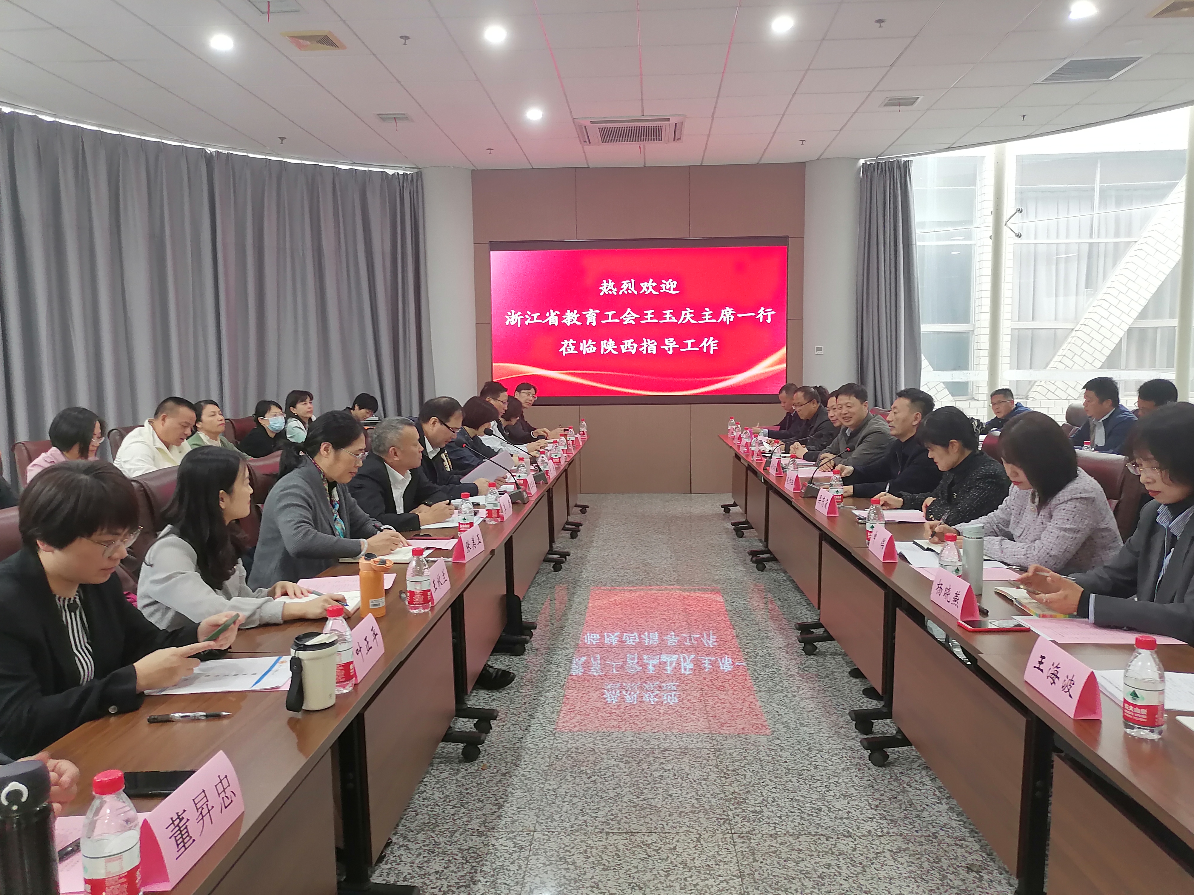 10月17日,浙陕两省高校工会工作高质量发展座谈会在乐鱼网页版页面登录举办。浙江省教育工会主席王玉庆、副主席李茜带领的浙江省教育工会系统21人,陕西省教科文卫体工会主席徐富权、副主席夏明文带领的陕西省高校工会系统14人参加会议,校党委副书记赵作纽出席会议。