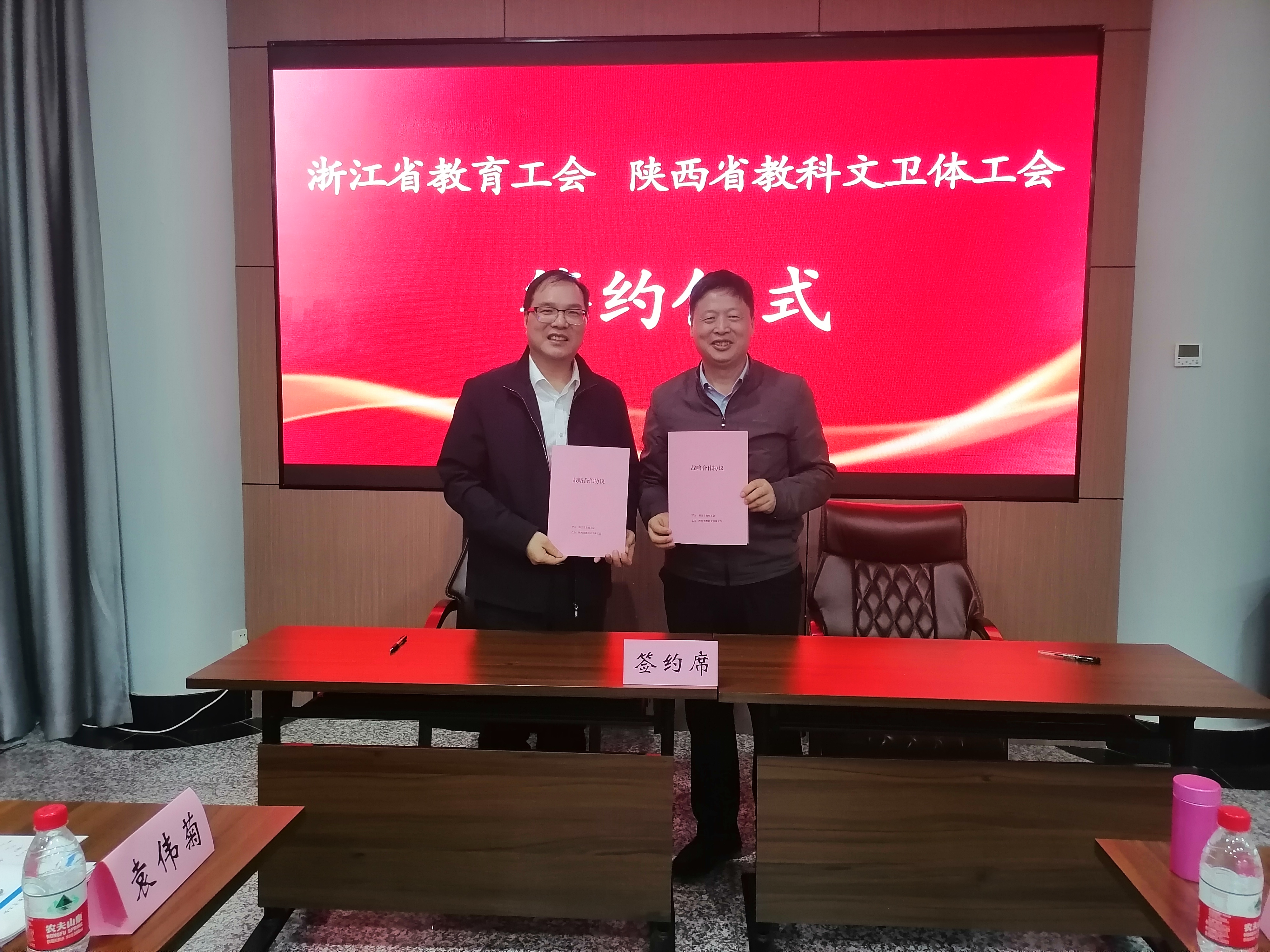 王玉庆表示,陕西各高校的工会工作各有特色、卓有成效,值得学习。王玉庆与徐富权签订了《浙江省教育工会和陕西省教科文卫体工会战略合作协议》。