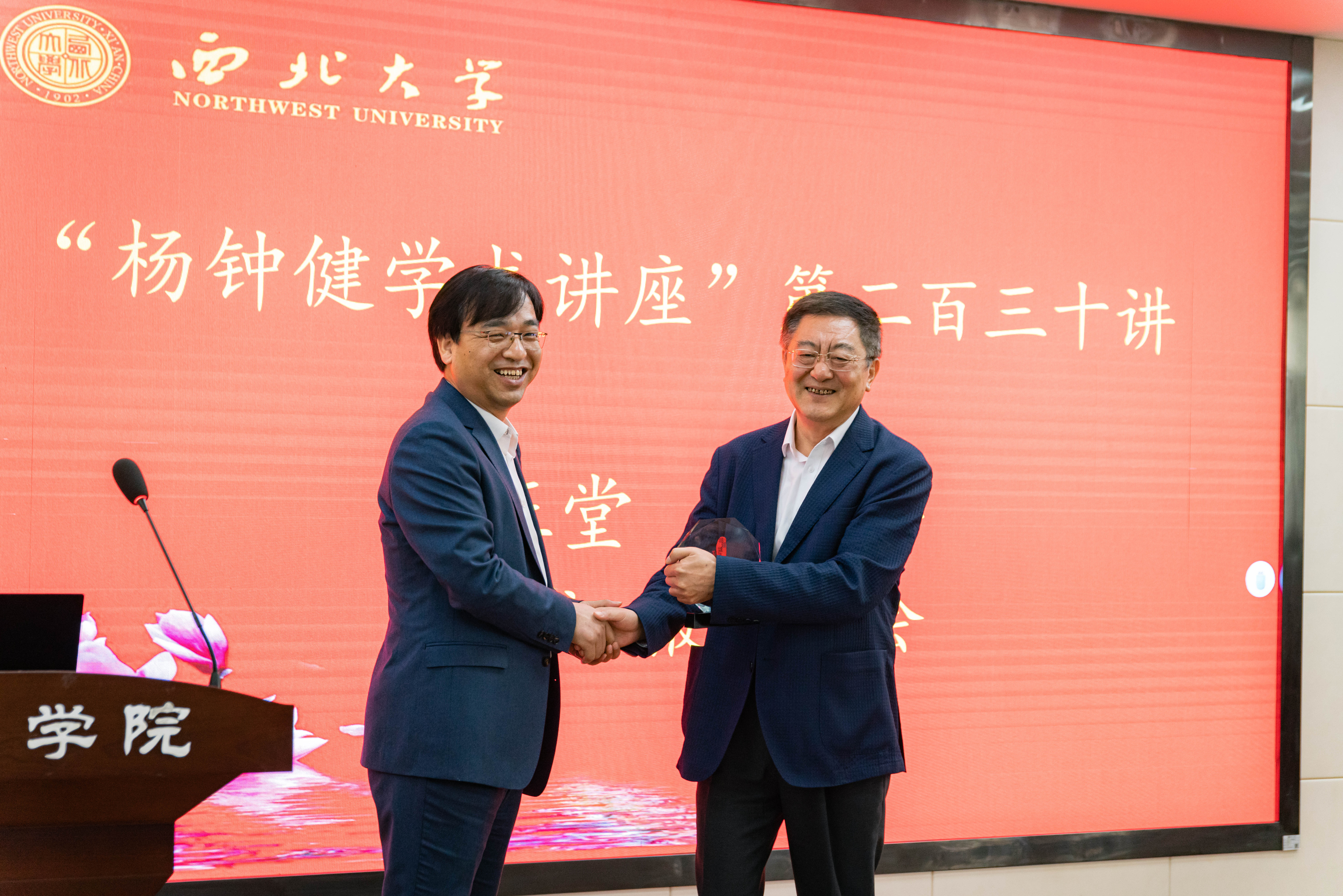 活动中,城环学院负责人致欢迎辞,并向郭正堂院士赠送了“杨钟健学术讲座”纪念牌。报告结束后,校党委常委、副校长赖绍聪会见了郭正堂院士。(图/钱舟)